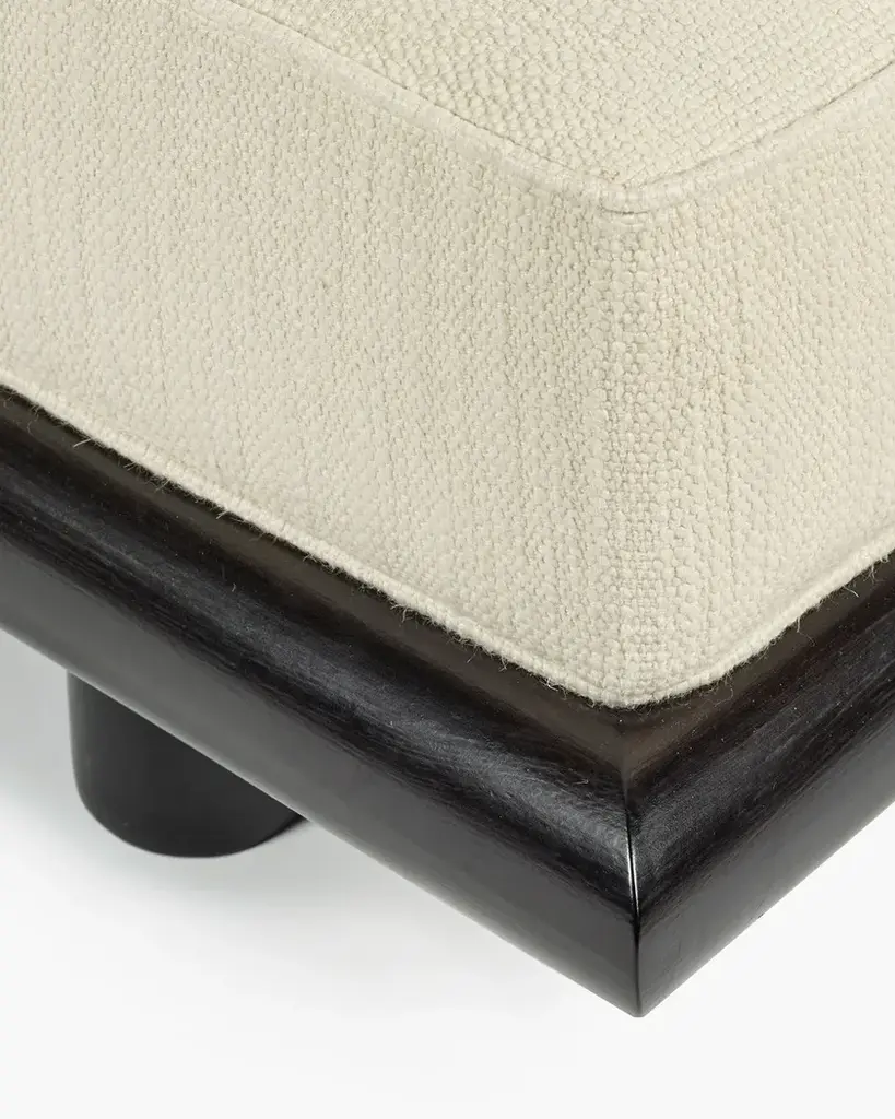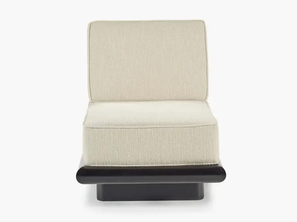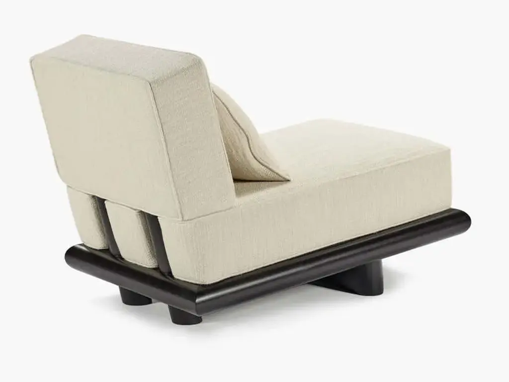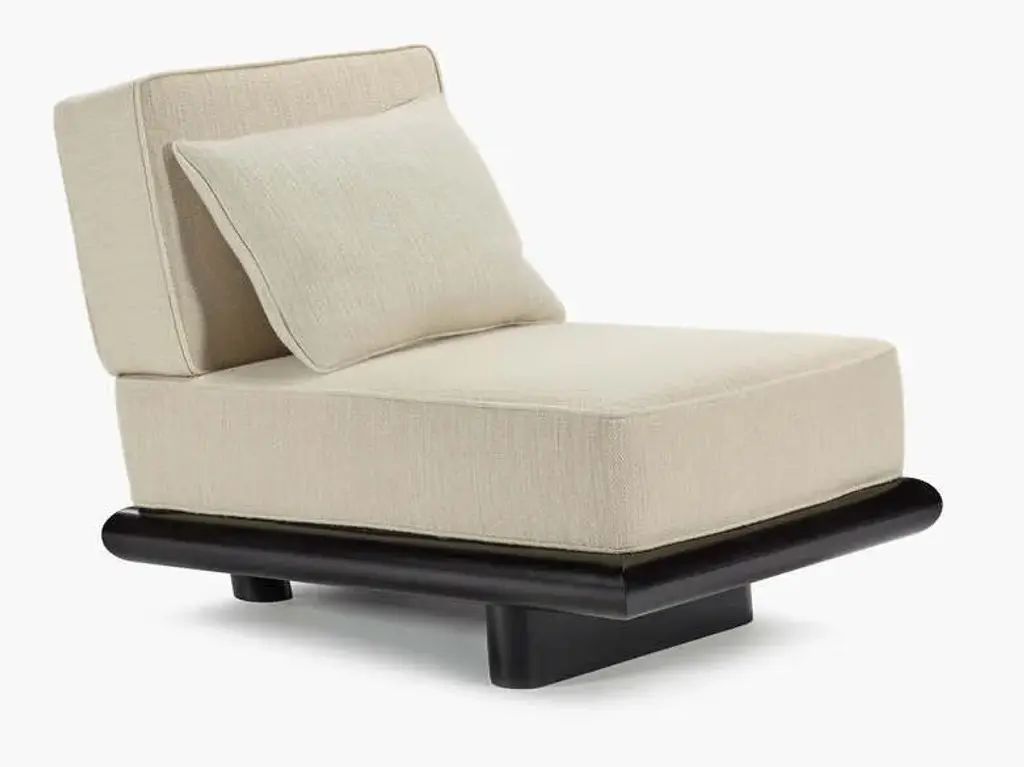 Ono is a fabric upholstered 1 seat sofa with a wooden base.The sturdy but elegant Ono family of seating plays with proportions and expectations. Both the Ono 1 seat and Ono 3 sofa are conceived as ‘active’ furniture, inviting several different ways of sitting. Elongated lines, deep upholstery and tactile fabrics combine with an unexpected slant to the seat. The form hugs relatively close to the ground, elevated on thick legs – a solid wide plank with curved ends at the front and two smaller columns at the rear. The rear legs rise up in between indents in the seat upholstery and appear to disappear into the back cushion,which slots over the frame creating a secure and supportive construction. The unique construction means that the design maintains interest when viewed from the back. This is particularly important in the 234-centimetre-long Ono 3, a sofa that can be placed freestanding in a room and look attractive from any angle.Demeulemeester and Robyn’s unexpected approach to colour comes to the fore in this family.It is the first time that Ann Demeulemeester and her life partner, Patrick Robyn, have designed a complete line of furniture. They have made one-off pieces, such as the Table Blanche for Bulo. As always, the starting point came from an own need or personal interest. “I make something because I’m missing it, I want it, and I can’t find it”, says Demeulemeester. The realisation developed into them wanting to translate these furniture pieces, designed for their own use, into accessible, timeless pieces that people would also want to integrate and cherish at home. Their furniture remains true to the couple’s distinctive aesthetic style. As with all their previous work, a light-hearted game between shadow and light is clearly visible, as well as a kind of refined decadence requiring an involved, intelligent owner. They don’t want to prescribe the use of these pieces but rather make suggestions for their use. At its heart, Demeulemeester’s work has always been an exploration and a celebration of contrasts - a beauty found in the interplay between strength and fragility, structure and nonchalance, the poetic and the radical, aesthetics and functionality. This is also the soul of the furniture collection and is further reflected in a dialogue between proportions and geometry. Linen, oak, wool, velvet, canvas - these materials form the heart of the collection and make you want to touch, caress and feel them. By experimenting with yarns, fibres and pigments, the designers have created a unique palette of textures and colours exclusively for the collection. There is the anticipated deep black and off-white, and also moss green, soft pale pink, a chic cream and warm roasted orange. All furniture is made of wood veneer or solid wood, FSC certified, and finished with either a lacquer or a water-based stain, which protects against dirt and allows you to clean the wood with a slightly damp cloth. The lacquers and stains are always sprayed (not applied with a brush). Customers should always be aware that wood is a natural material that can show imperfections and still undergo changes over time (shrinkage/expansion, change of colour under the influence of light). For the upholstered furniture, the fabrics are woven in Belgium and exclusively designed and confectioned for this collection.