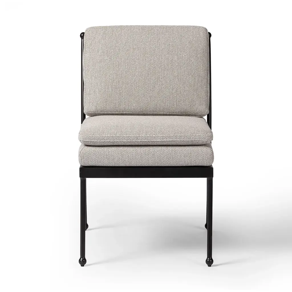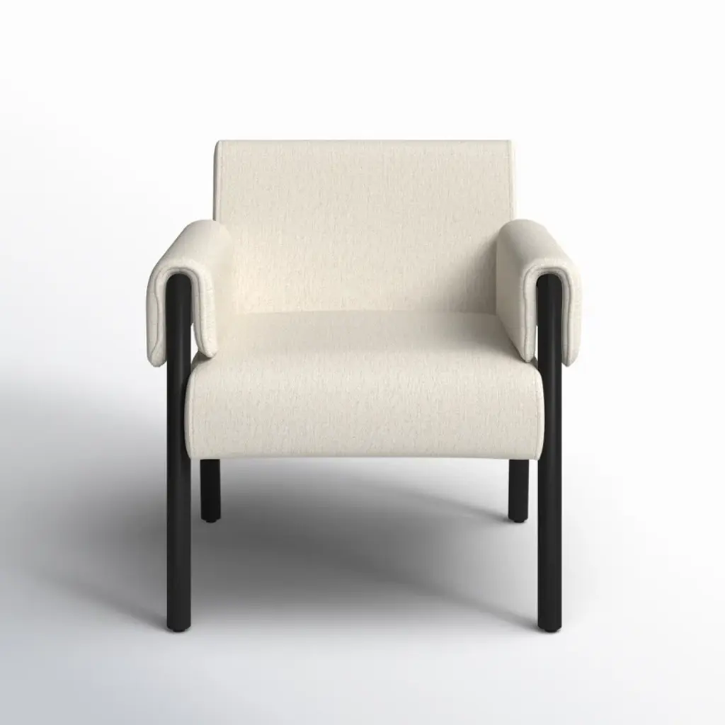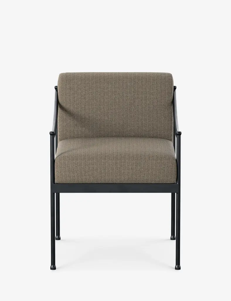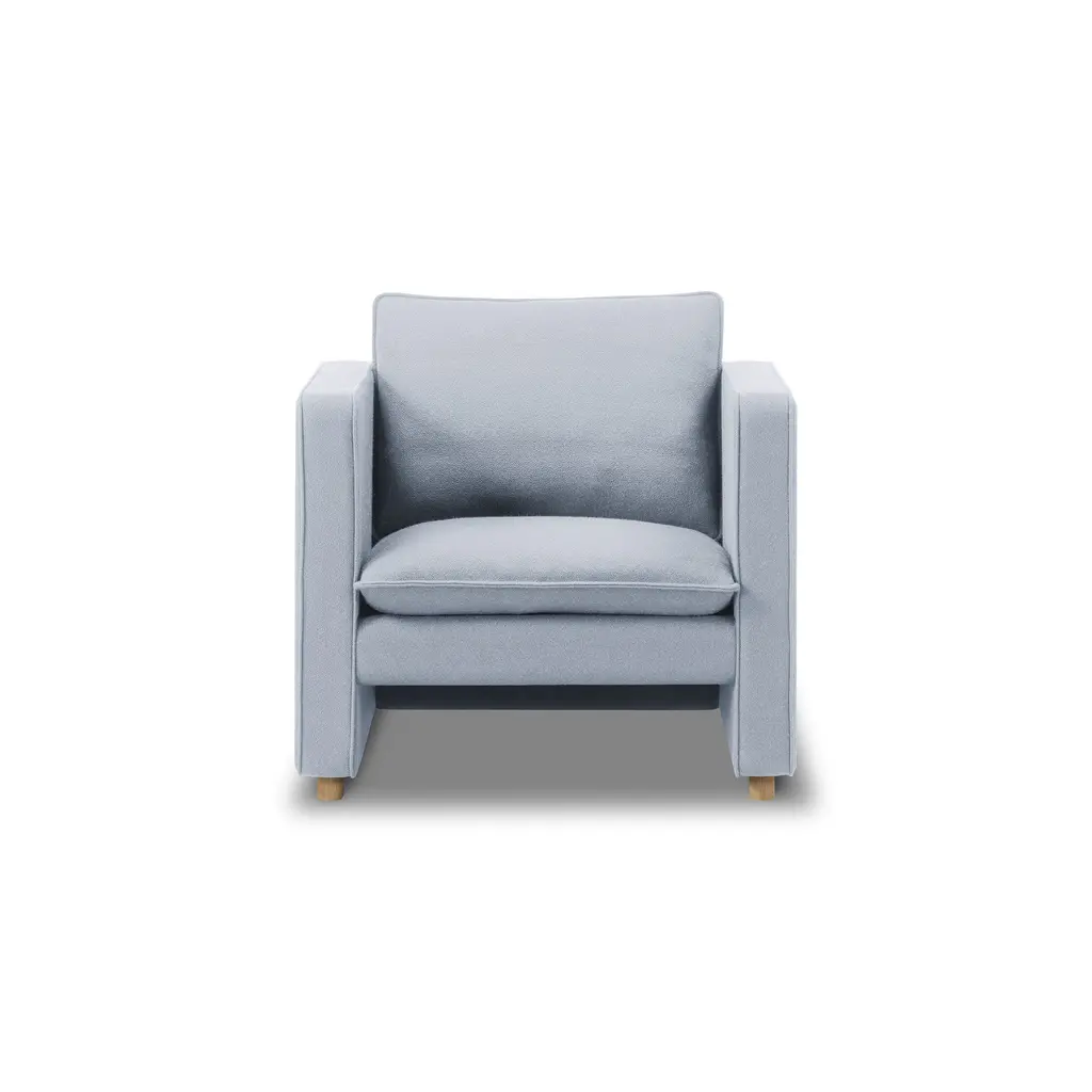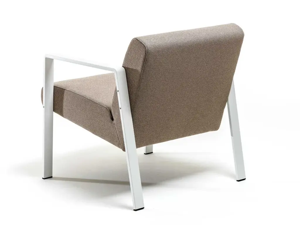 Oreotto is an armchair available in fabric or leather, featuring a supporting structure with open armrests made of tubular metal and polypropylene glides.The metal leg design highlights its simple shape and harmoniously connects to the beveled cut of the backrest.
