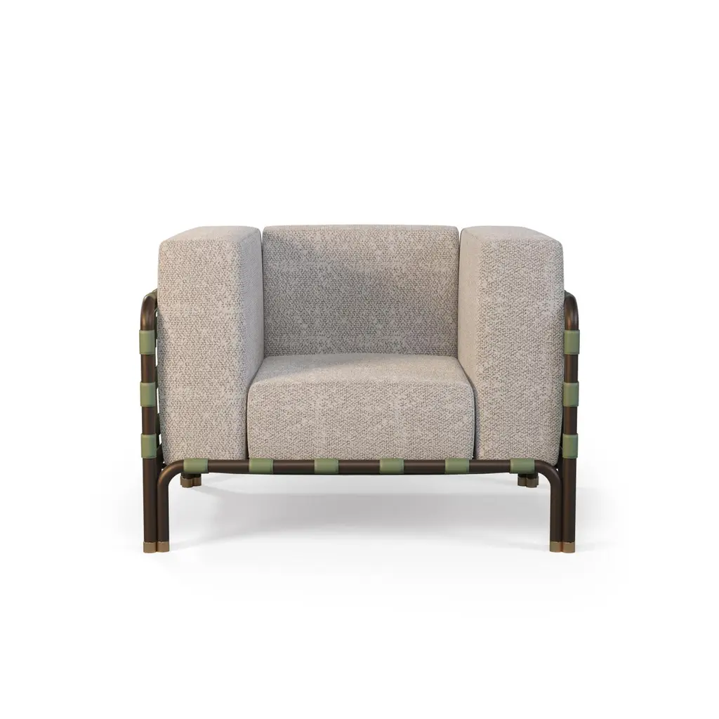 Hound armchairThe Hound armchair is a perfect combination of classic elegance and modern durability, designed to elevate any outdoor setting. Designed with high-quality materials, it withstands all weather conditions while maintaining its timeless charm. All Myface materials are from premium suppliers, engineered to offer the best performance possible outdoors.Water, Mold, Mildew, UV, and Fading resistance are some of the characteristics that you can expect from both materials, which are available in a wide array of colors and patterns.