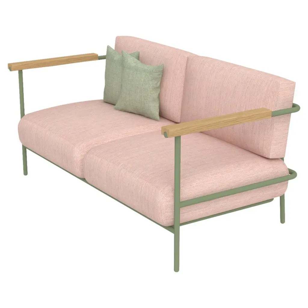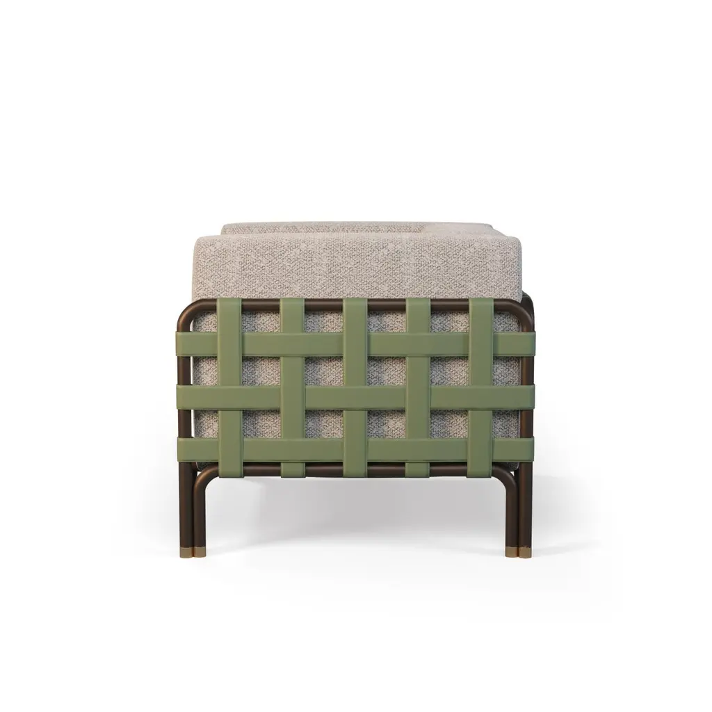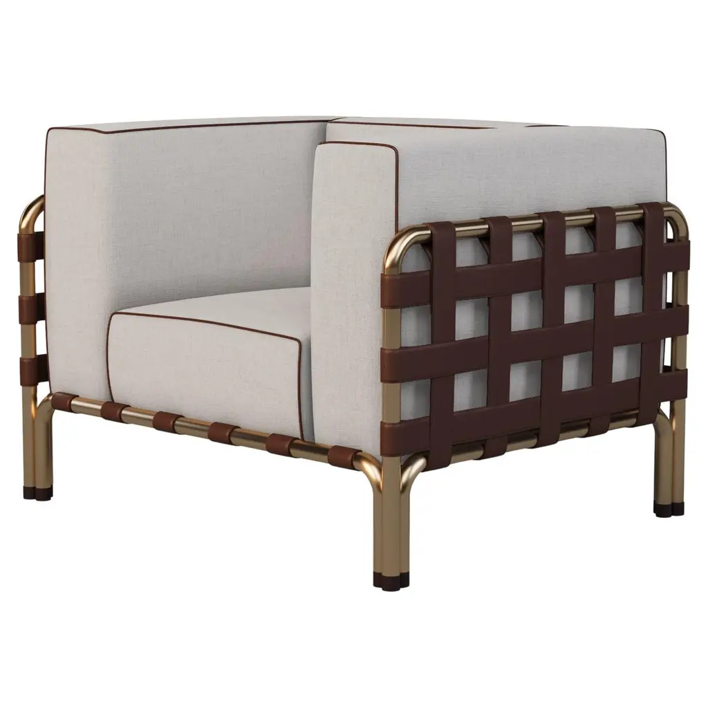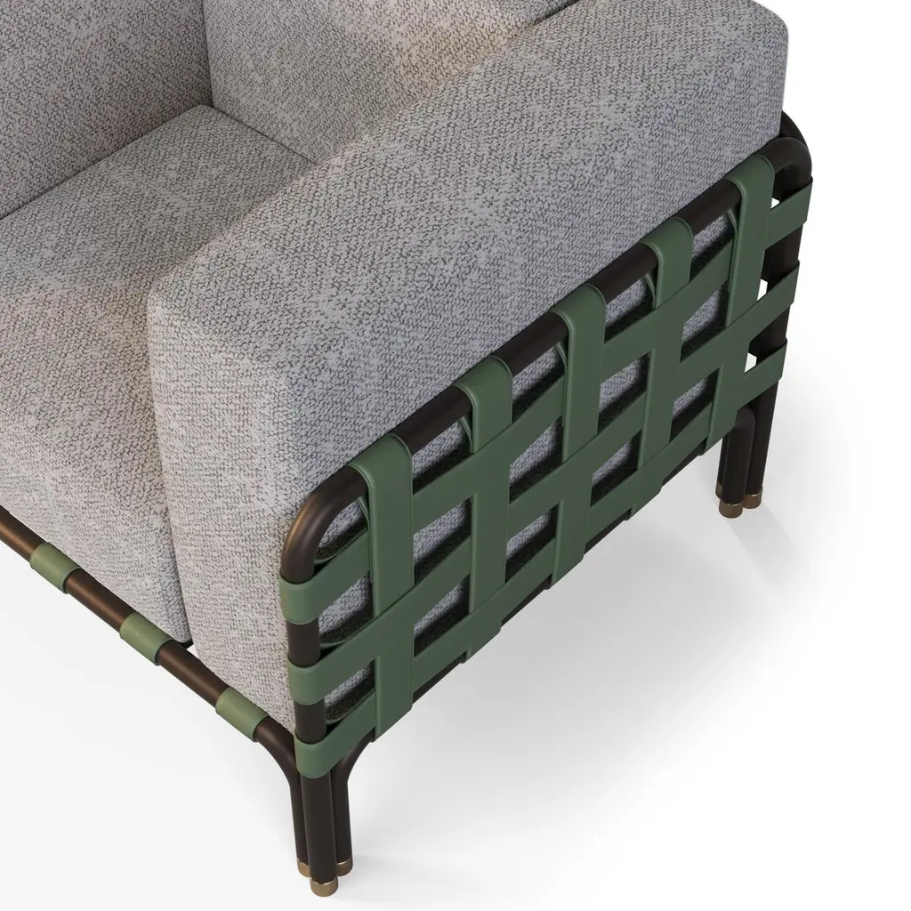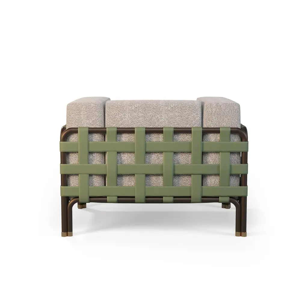 Outdoor Armchair With Bouclé Upholstery And Green Leather Accents