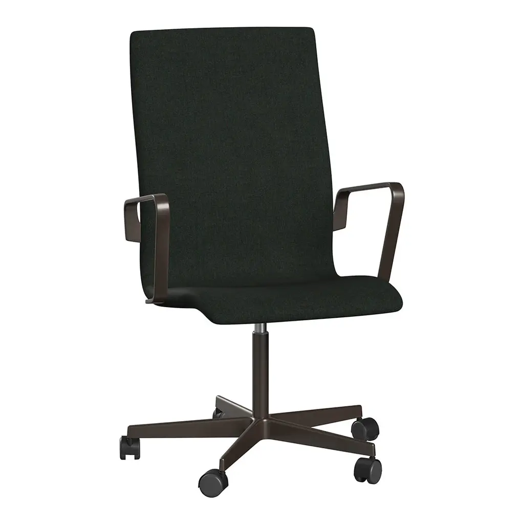 Originally designed by Arne Jacobsen for professors at St. Catherine's College at the University of Oxford, England, Fritz Hansen's elegant Oxford chair has since been upgraded for a new generation of workspaces to offer supreme sitting comfort and customisation to suit every modern need. Blending form with function, the medium-back 3273T is set on a five-star base with a fixed seat height tailored to desktops. Available with armrests which tuck neatly under tabletops. The minimalist design is cushioned for comfort and lumbar support for a more natural sitting posture.