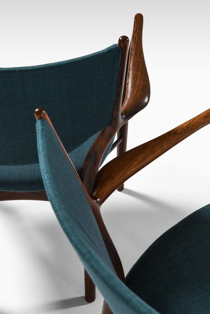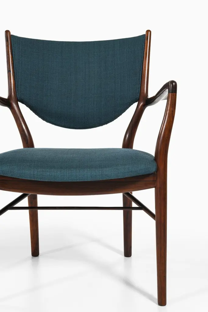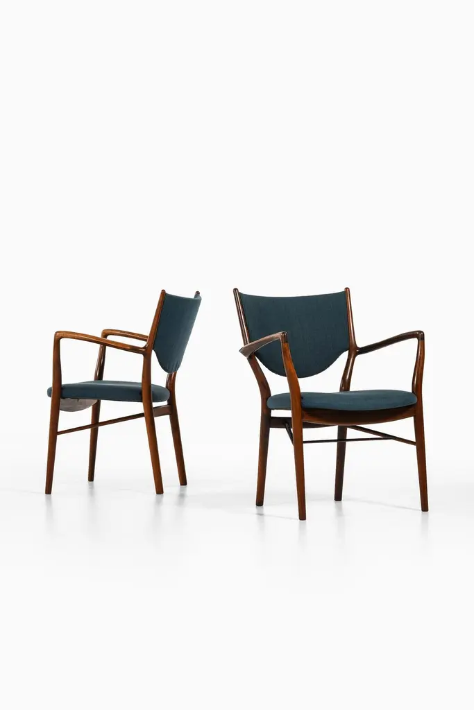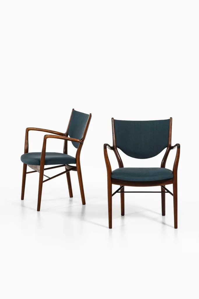 Pair of Armchairs in Rosewood and Original Fabric by Finn Juhl, 1946Additional Information:Material: Rosewood and original fabricStyle: Mid century, ScandinaviaVery rare pair of armchairs model NV-46Produced by cabinetmaker Niels Vodder in DenmarkDimensions (W x D x H): 64 x 61 x 82.5 cmSeat Height: 42 cm