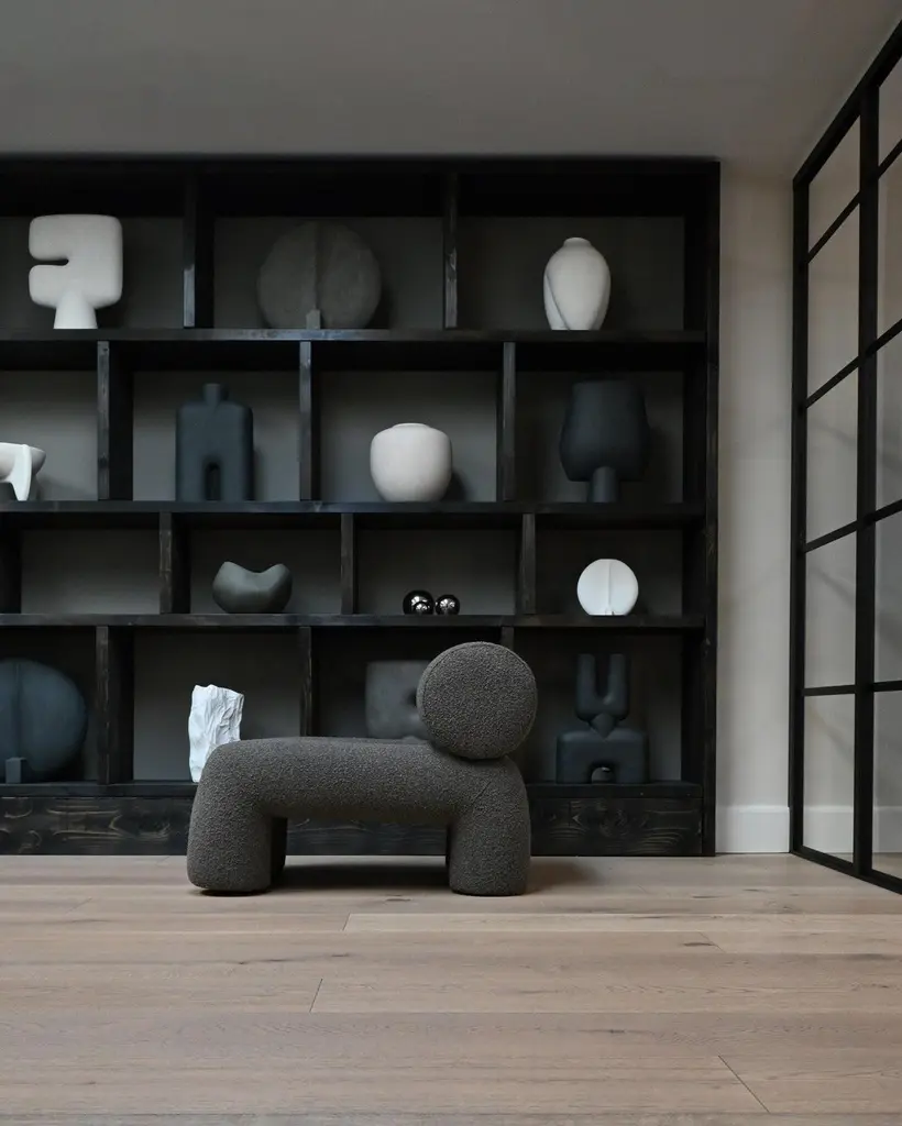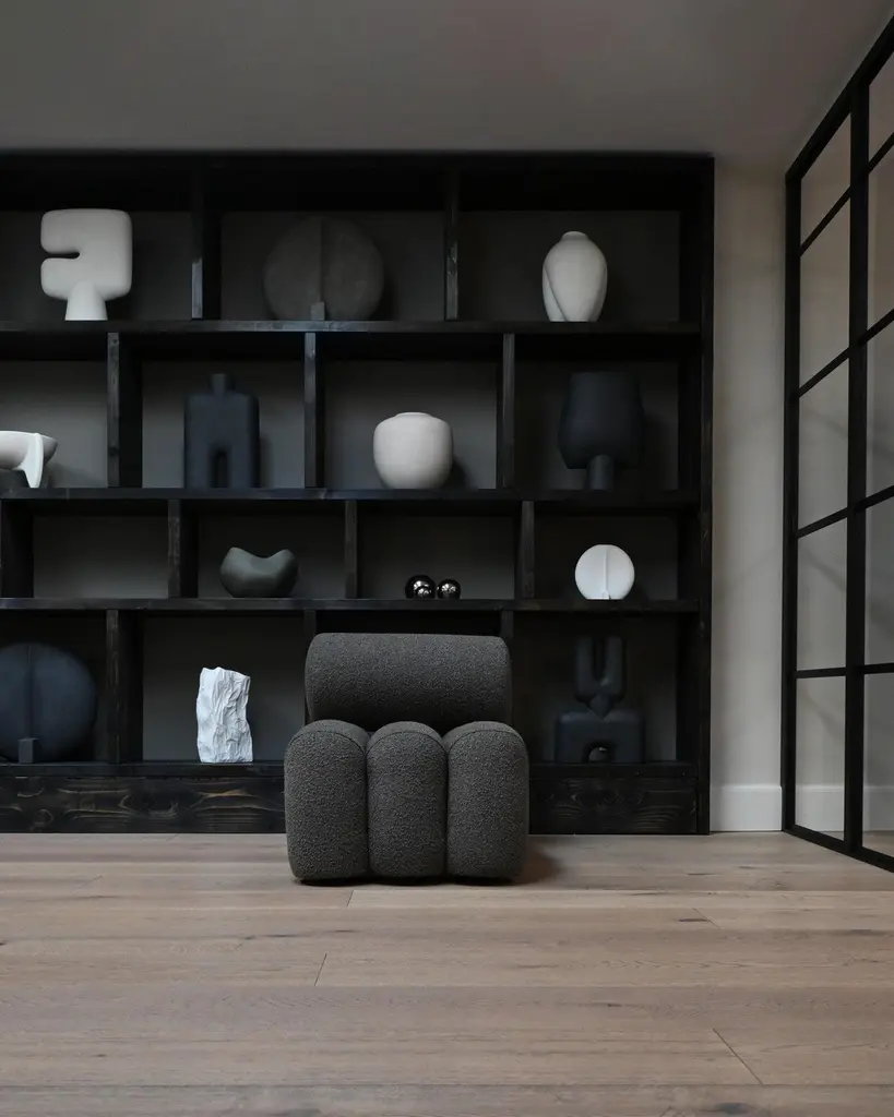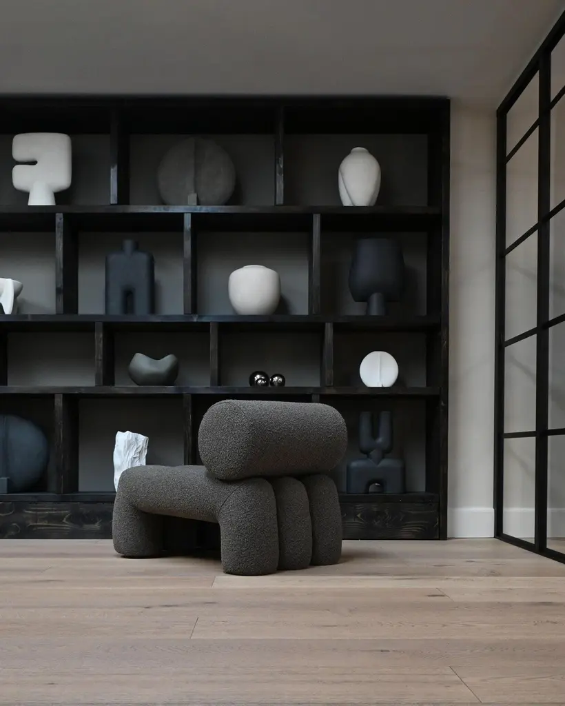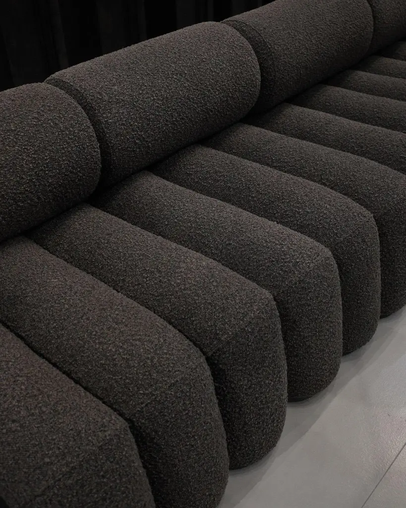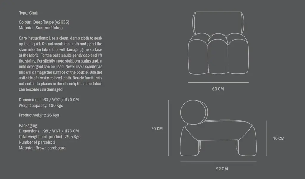 Pair of contemporary armchairs, model Foku - dark taupe colour - Curly Fabric - mid 21st century design.Pair of armchairs model Foku. These armchairs are made from dark taupe Curly Fabric, combining modern elegance with warm refinement. The geometric shape blends effortlessly into a sculptural furniture design. The rich texture of the fabric complements the minimalist form, this pair of armchairs offers lasting support and comfort, perfectly combining aesthetics and relaxation for a refined experience.Set includes: 2 ArmchairsColour: Deep taupeMaterial: Curly FabricDimensions: L: 60 cm / W: 92 cm / H: 70 cmLoad capacity: 180 kgProduct weight: 26 kg