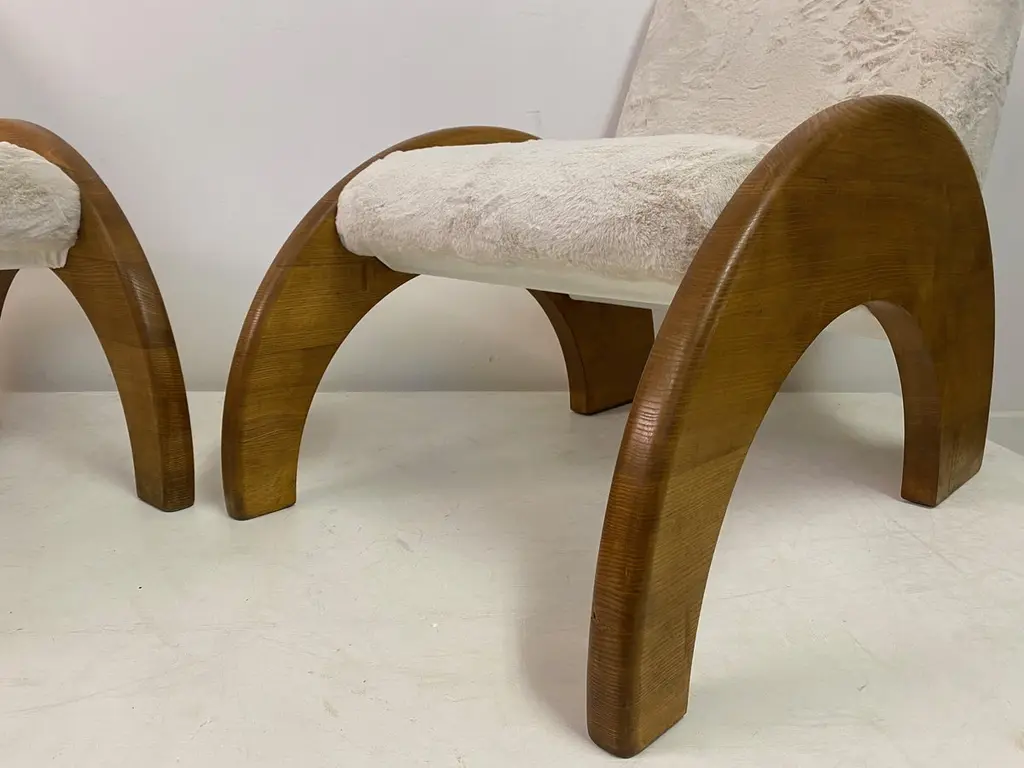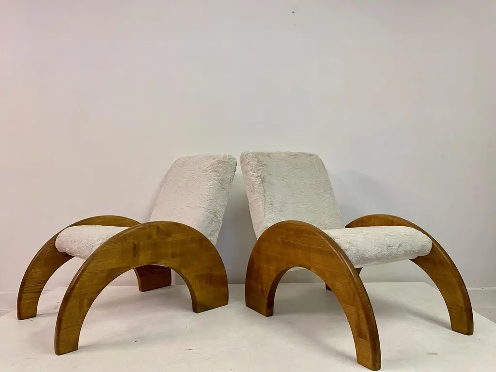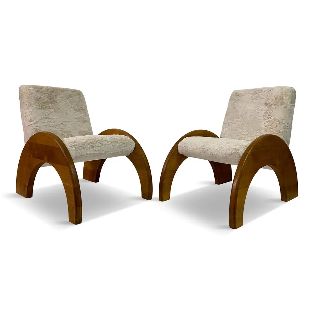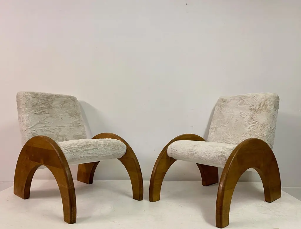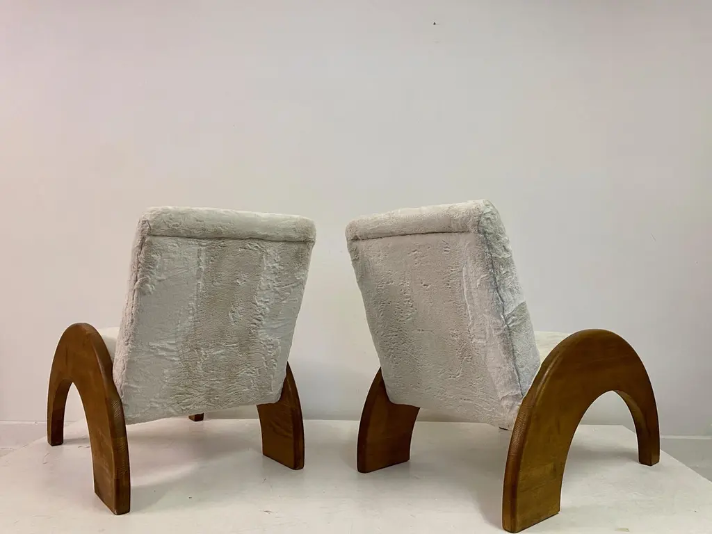 Pair of armchairsArched arms and legsFake fur upholsterySeat height 46cmContemporary ItalyThese in stock but more can be made to order.