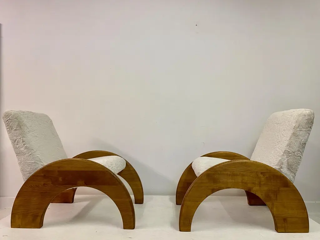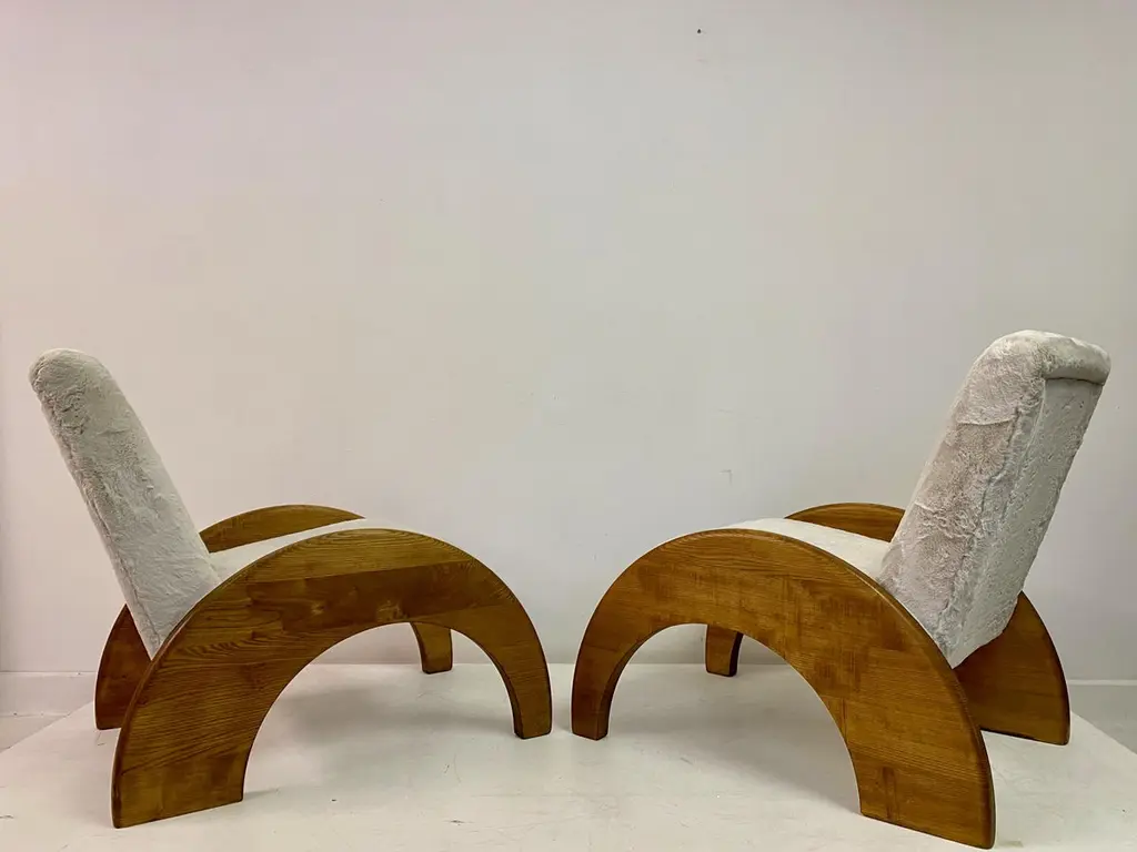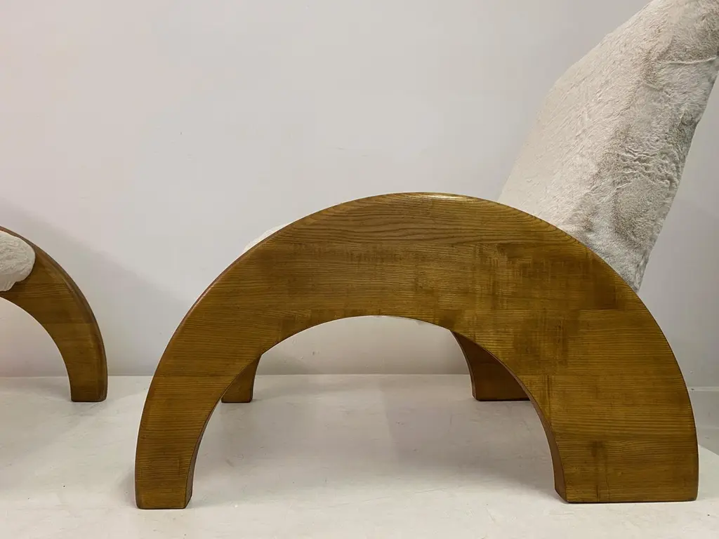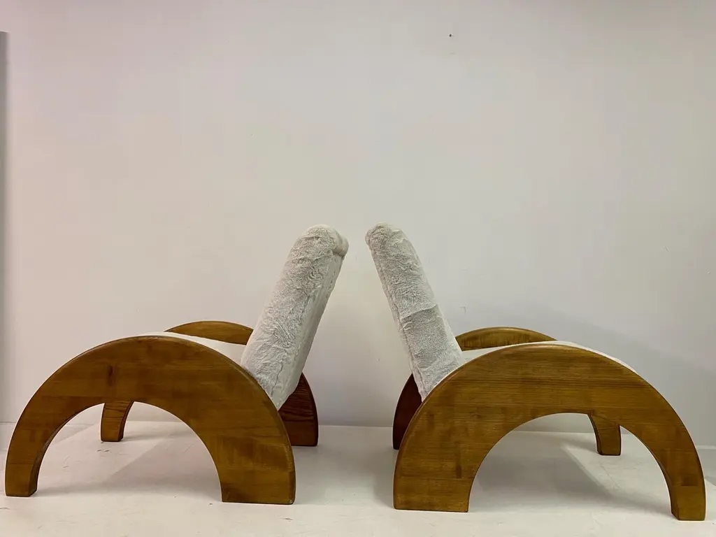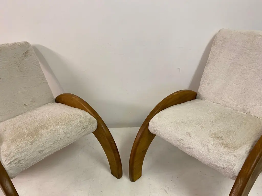 Pair of armchairsArched arms and legsFake fur upholsterySeat height 46cmContemporary ItalyThese in stock but more can be made to order.