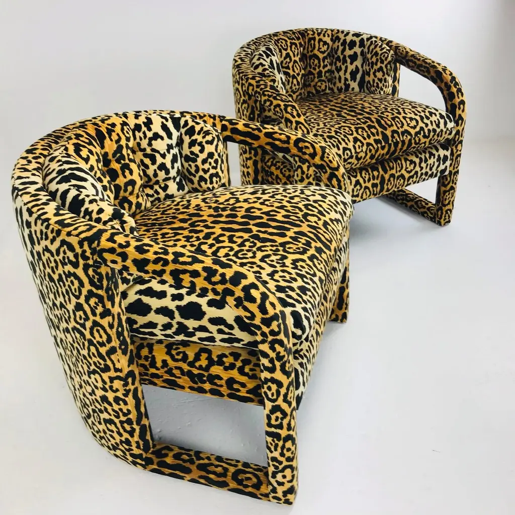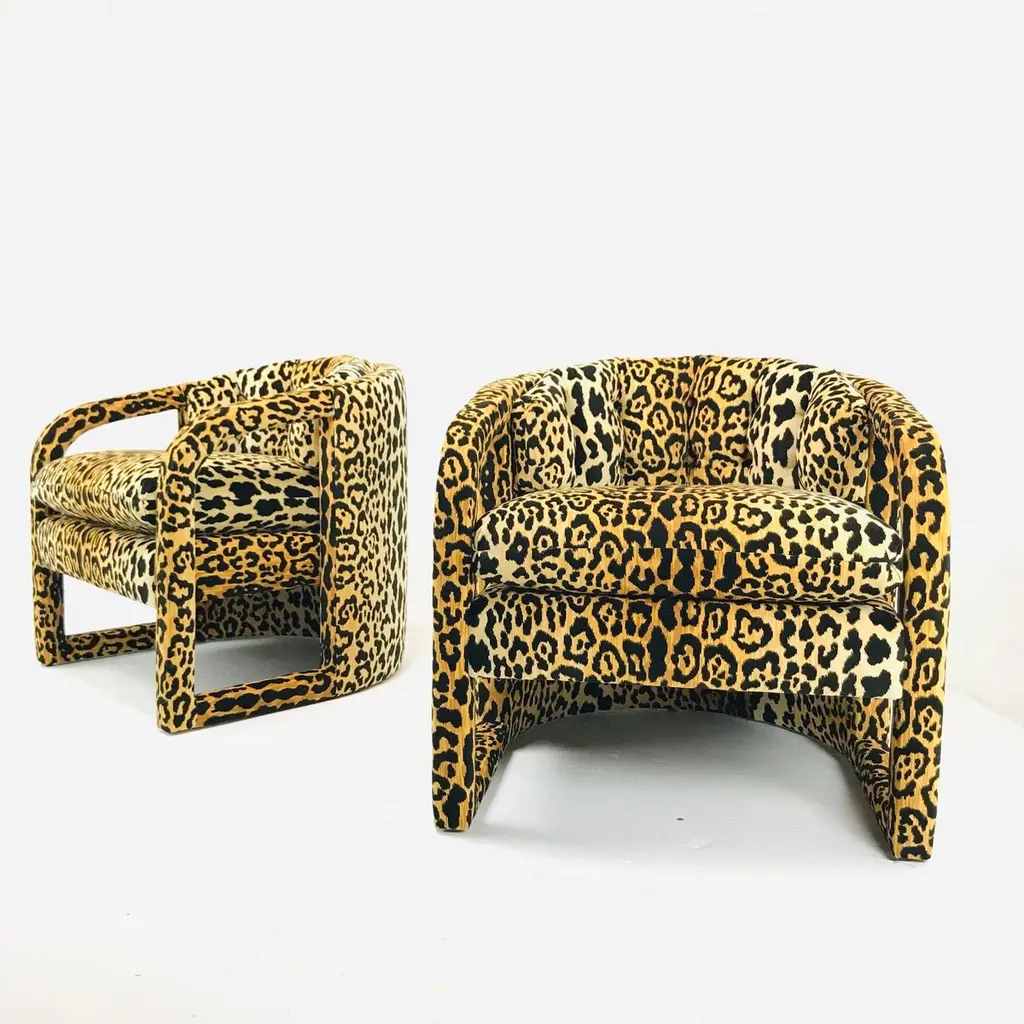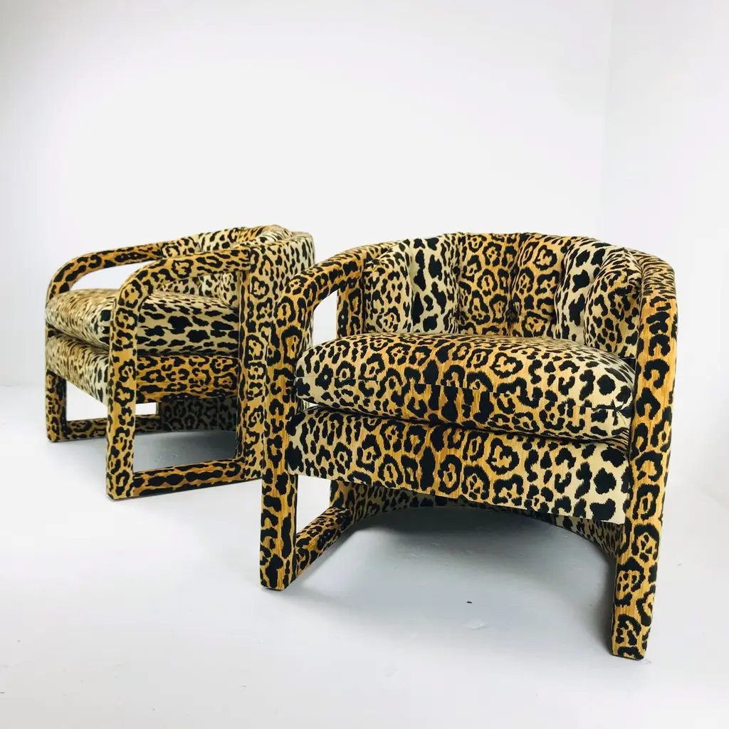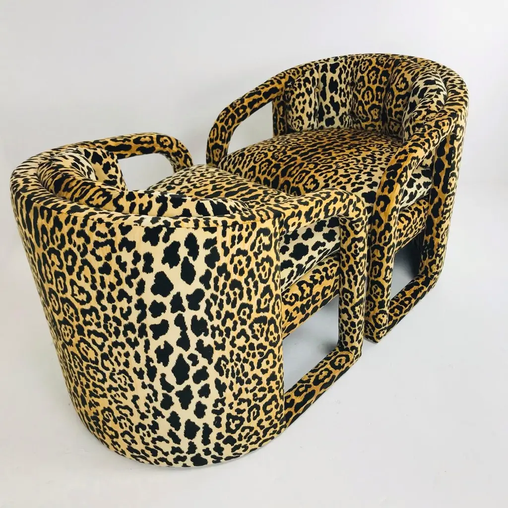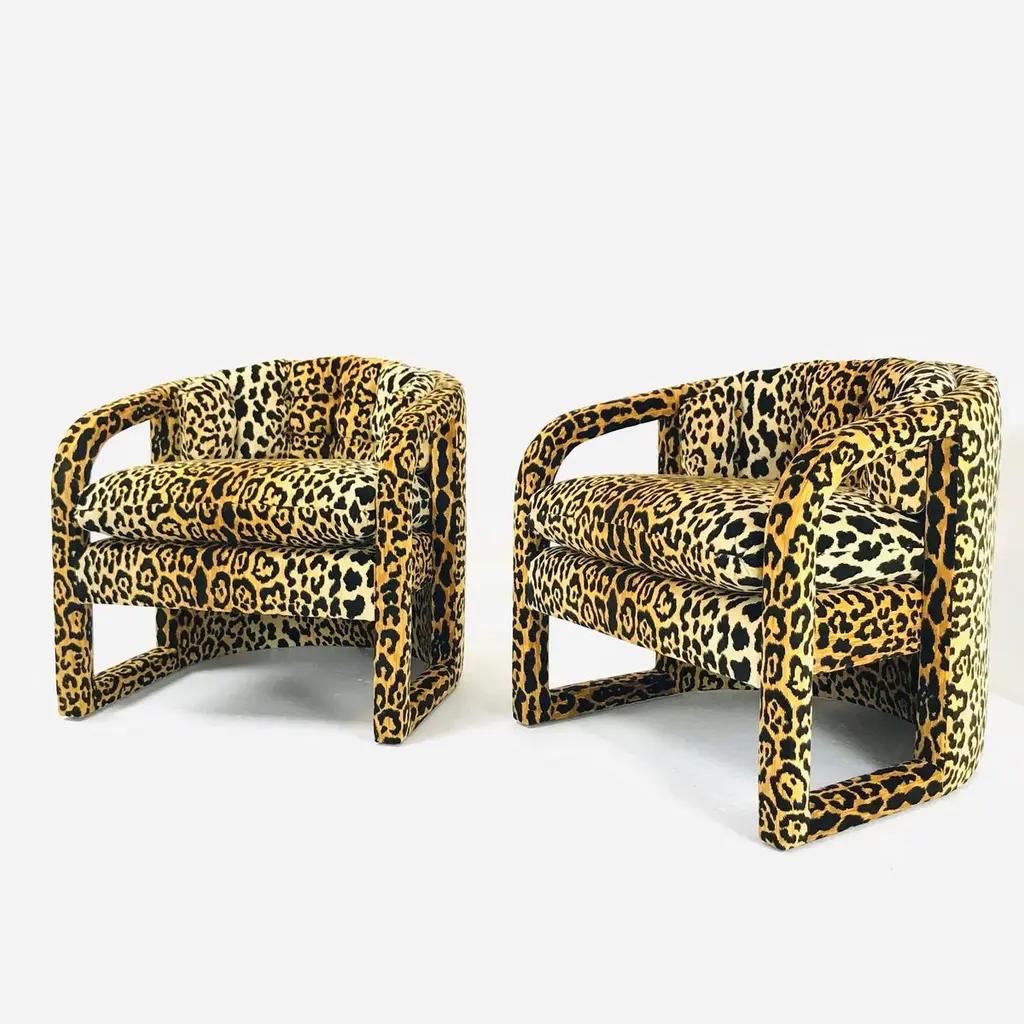 Pair Of Custom Barrel-Back Armchairs In Leopard Velvet