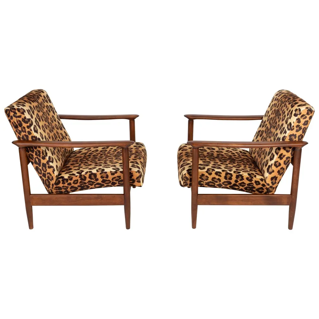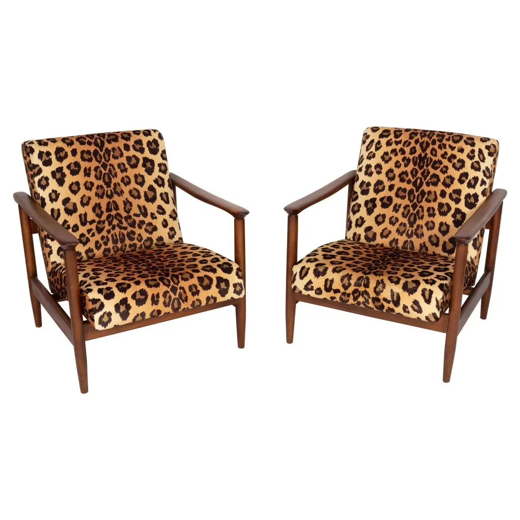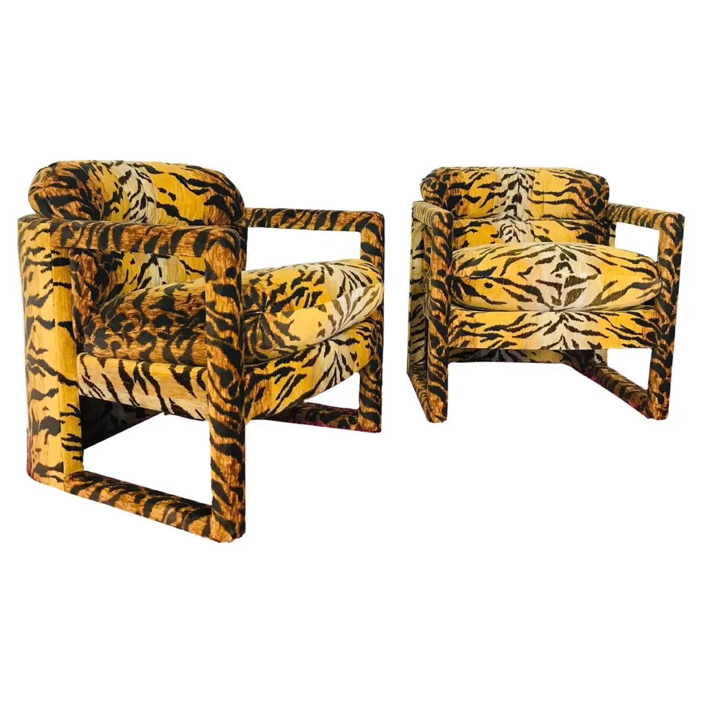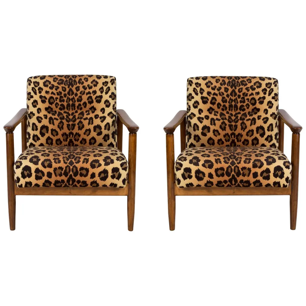 Pair Of Custom Barrel-Back Armchairs In Leopard Velvet