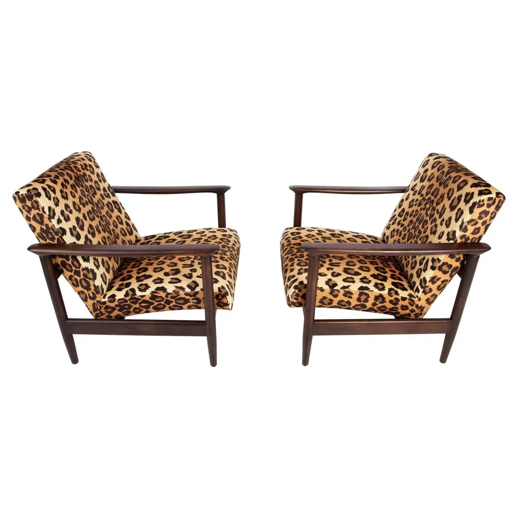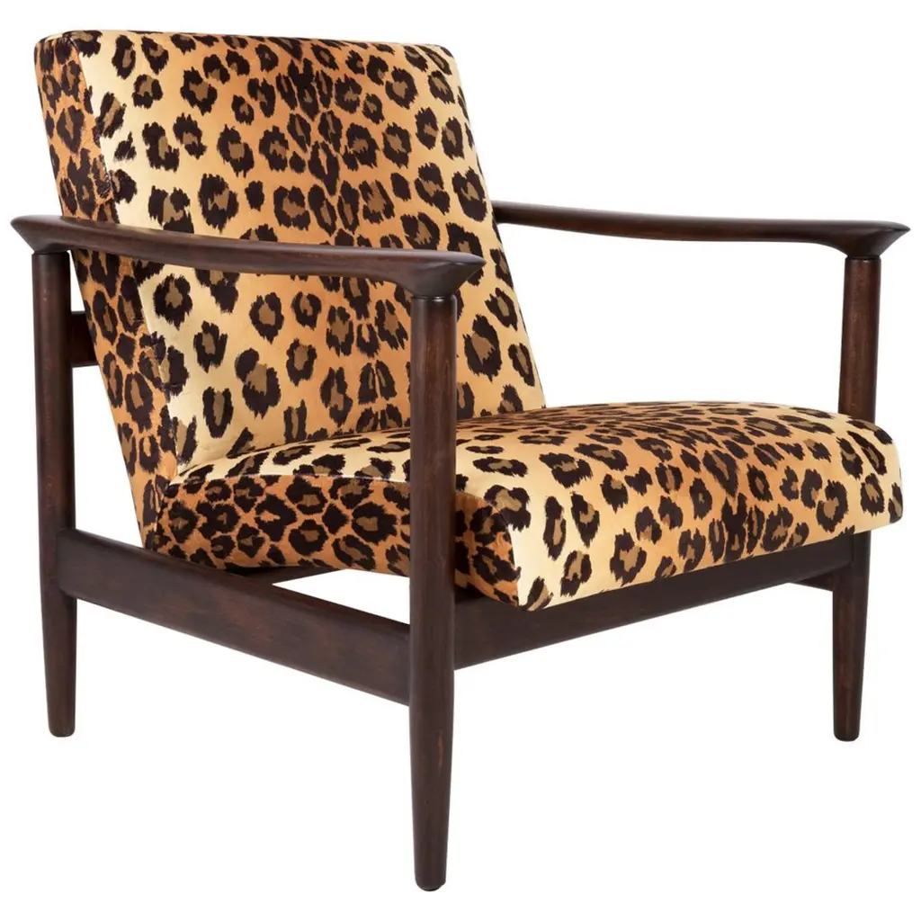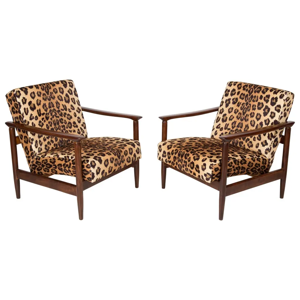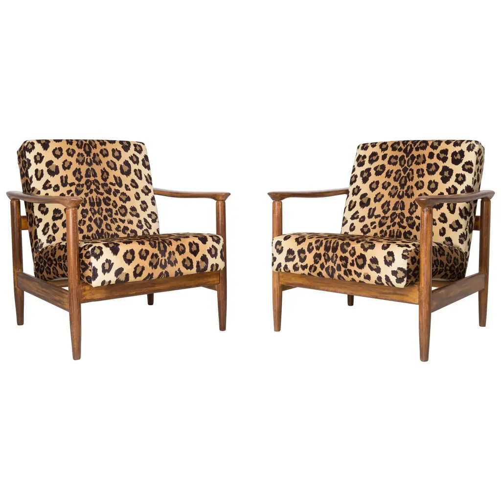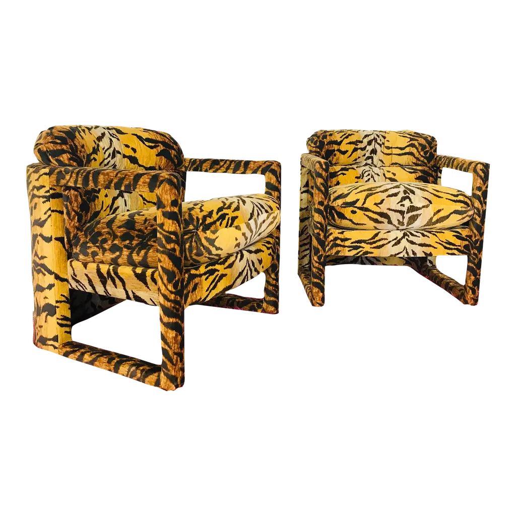 Pair Of Custom Barrel-Back Armchairs In Leopard Velvet
