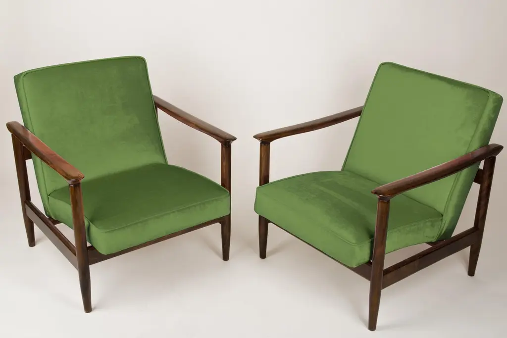 Pair Of Green Armchairs, Edmund Homa, Gfm-142, 1960s, Poland