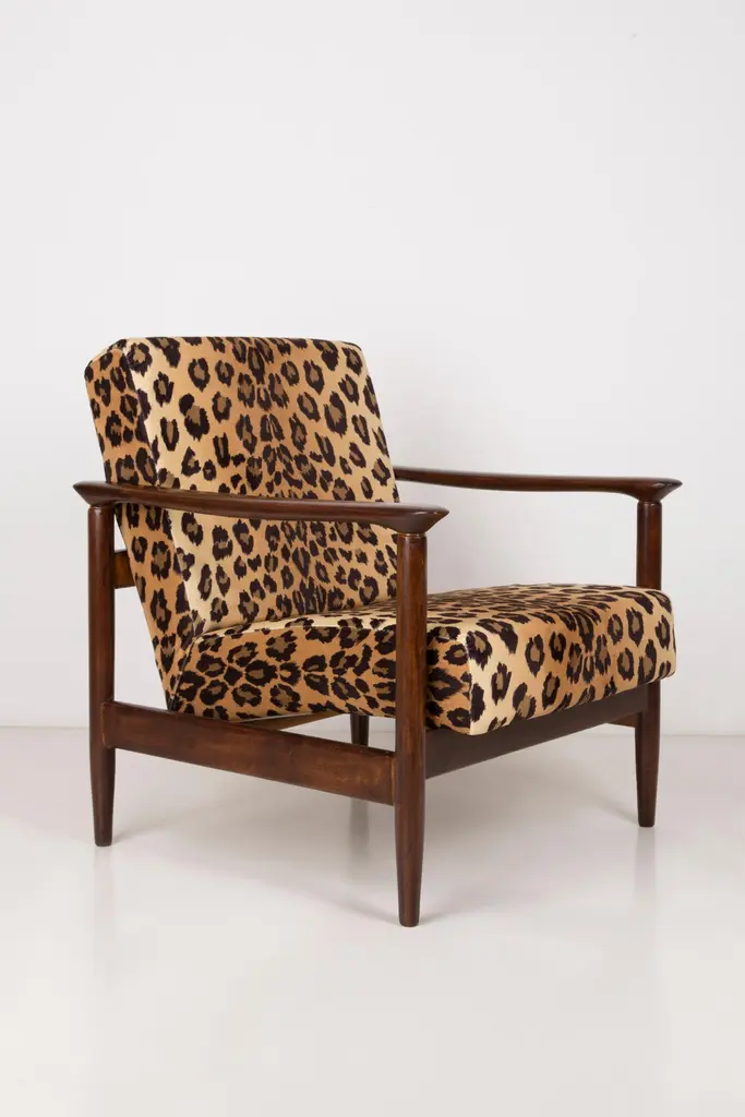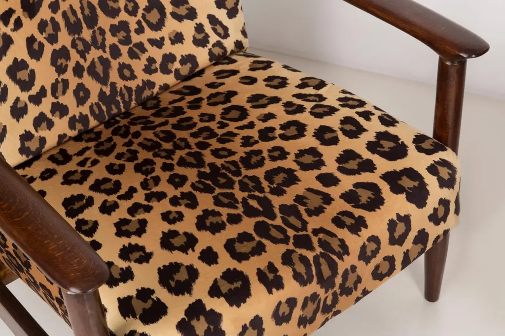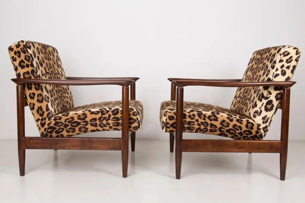 Pair Of Leopard Print Velvet Armchairs, Edmund Homa, Gfm-142, 1960s, Poland