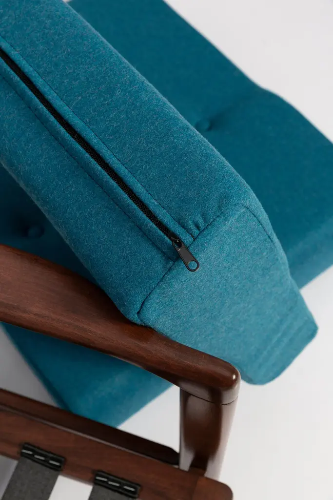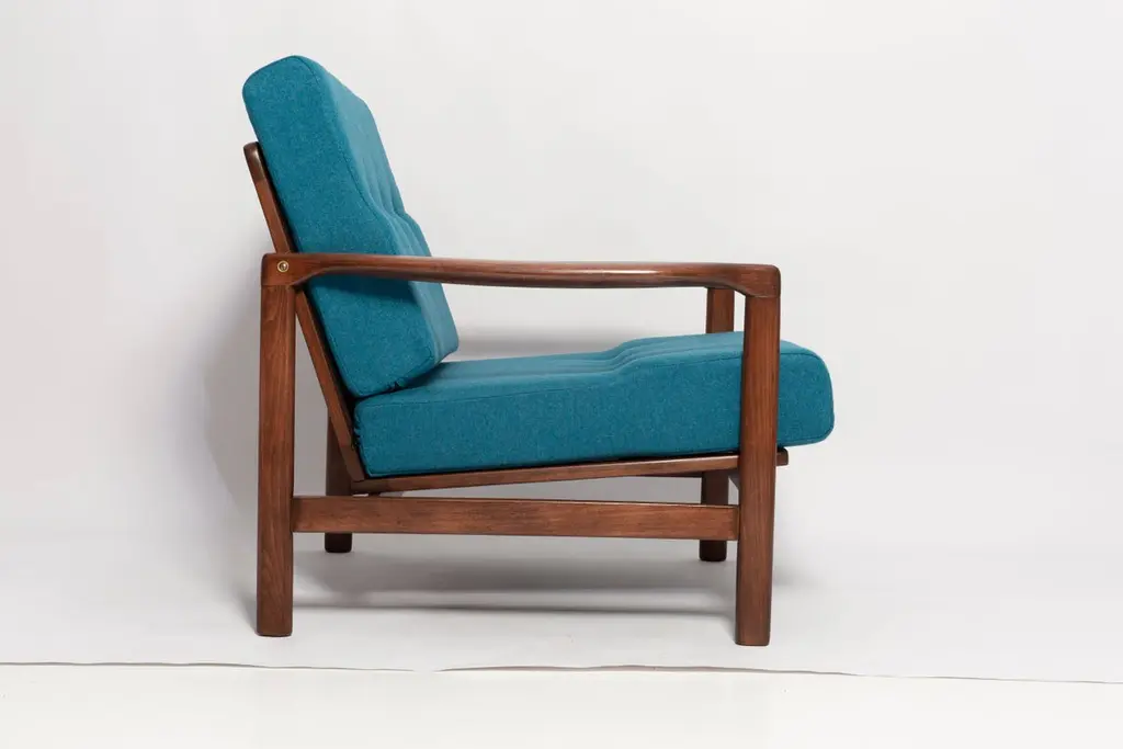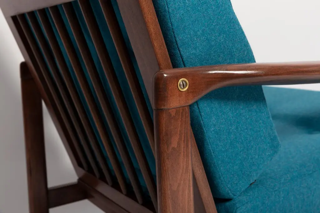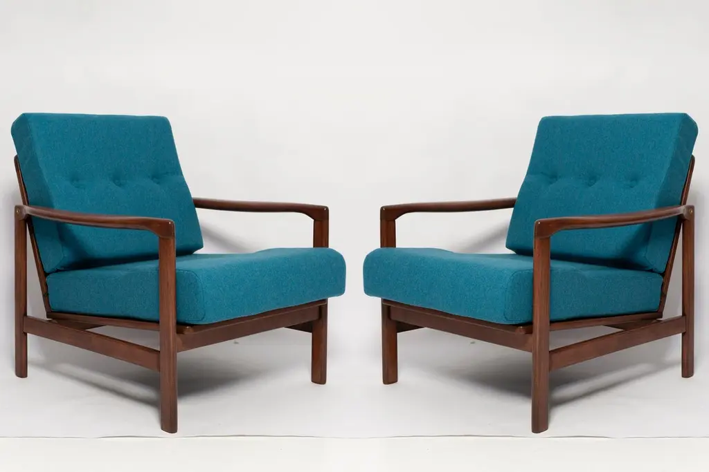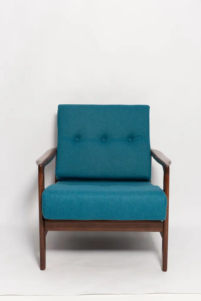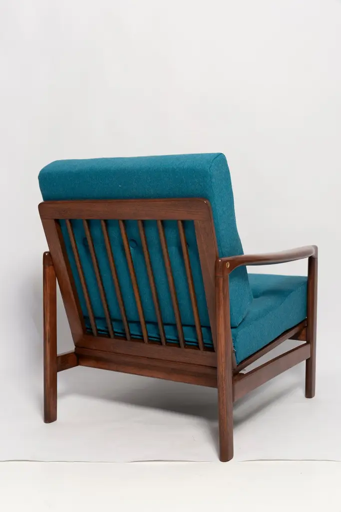 The B-7522 armchairs was designed in the 1960s by Zenon Baczyk, it was produced by Swarzedz furniture factories in Poland. This is original vintage armchair after renovation, they are not new! Furniture kept in perfect condition, after full upholstery and wood renovation.Stabile and very comfortable armchair, dressed in high-quality wool. We can prepare this armchair also in another fabric and wood color. Please check the last pictures and ask for more informations.Here set of Two is available.