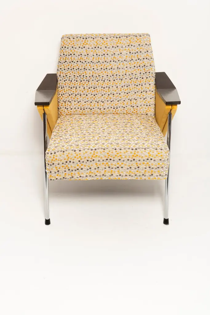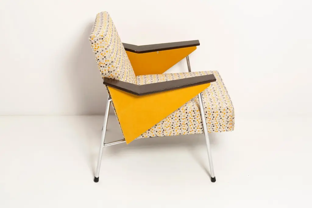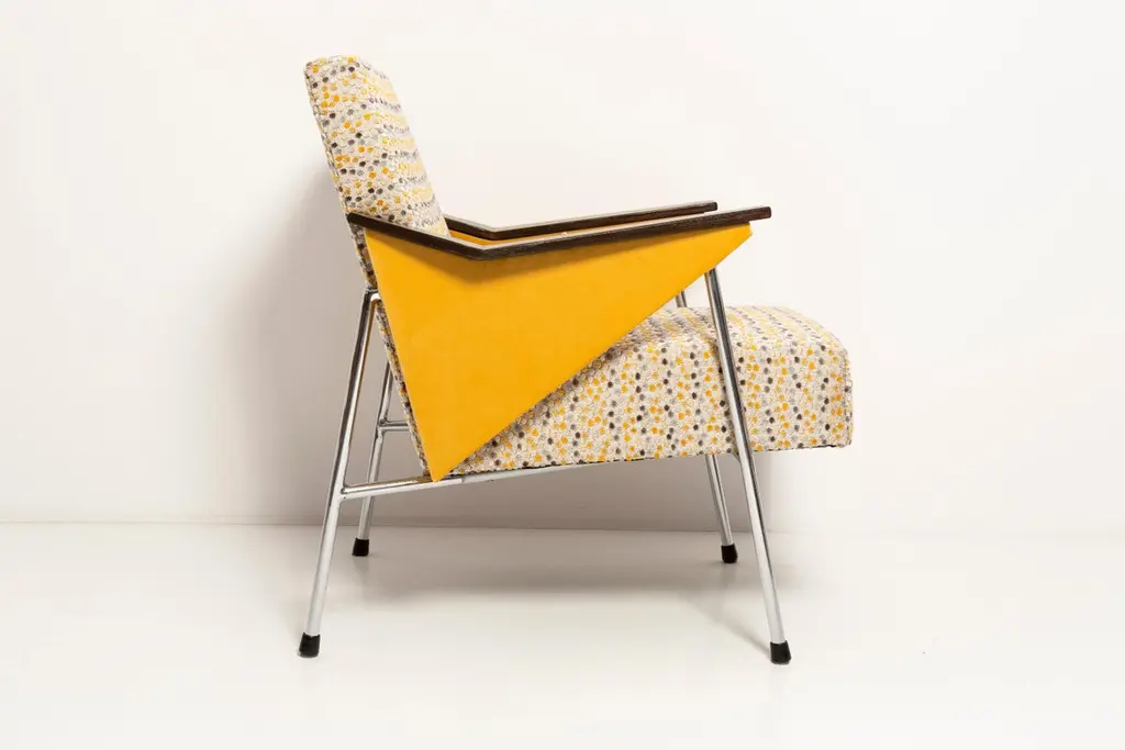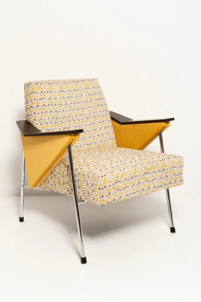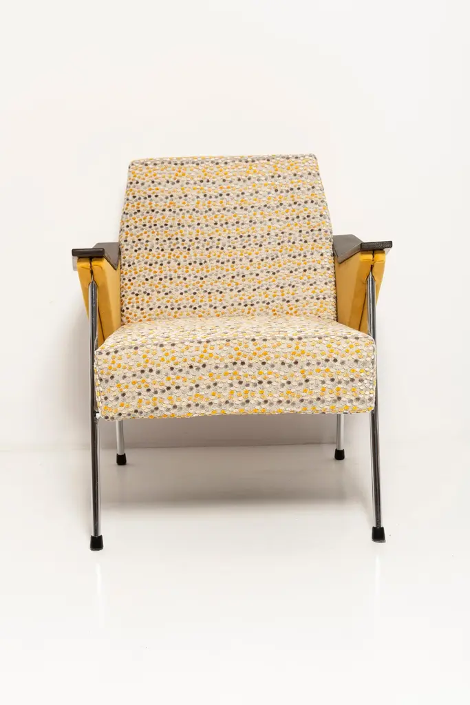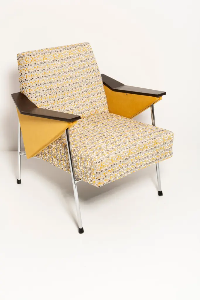 Pair Of Mid Century Bat Armchairs, Yellow Dots, Bauhaus Style, Poland, 1970s.