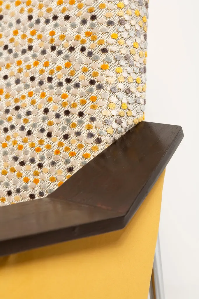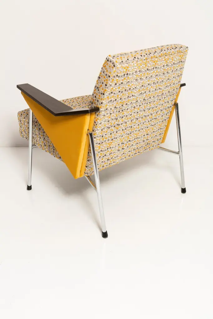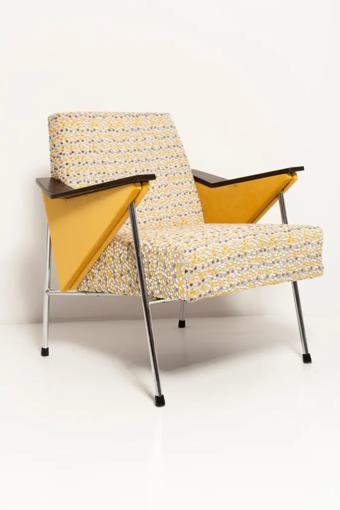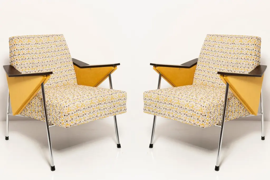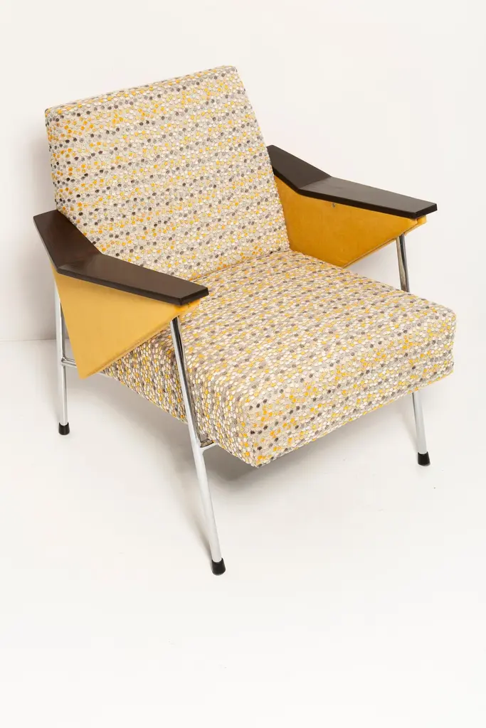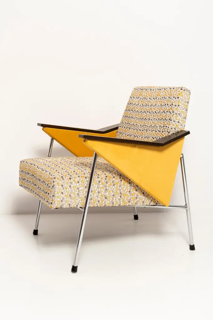 Pair Of Mid Century Bat Armchairs, Yellow Dots, Bauhaus Style, Poland, 1970s.