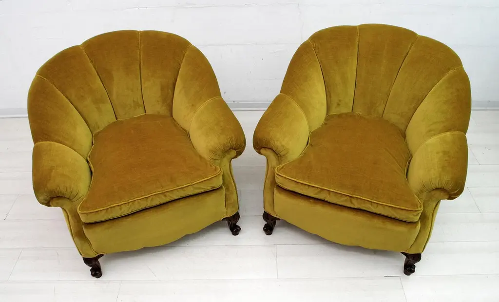 Pair of 1950s armchairs, velvet upholstery, kept in good condition.The price is for the couple.