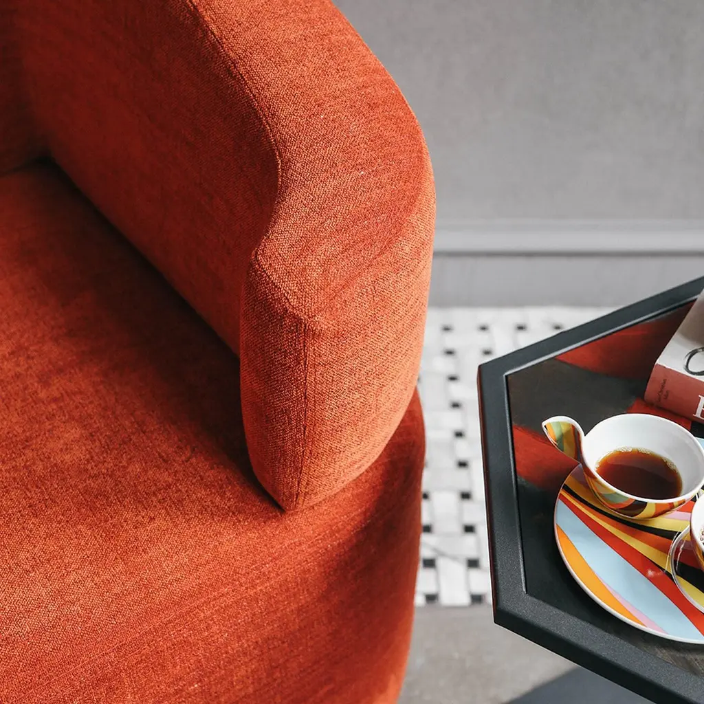 Production Time: 6-7 weeks.The Minio sofa, which gives you freedom of movement while sitting with its rotating mechanism, reveals its difference in design with the striking curved form of its armrests.Product SpecificationsWidth: 87 cm (34.3 inches)Depth: 83 cm (32.7 inches)Height: 75 cm (29.5 inches)Seat Height: 43 cm (16.9 inches)Seat Width: 47 cm (18.5 inches)Weight: 43.6 kg (96.1 lbs)-360 Degree Rotating Mechanism-Spring Upholstery-32 DNS HR Foam-1st Grade Beechwood Frame.UPHOLSTERED PRODUCT USE AND CARE Dry clean your product and refer to the sales form for special care instructions. Call us for re-upholstery of your product.When choosing your fabric, submit your flammability certificate request.Avoid using upholstery perfumes directly on the product. Instead, spray in the air around the product to ensure dispersion rather than direct contact.SOLID WOOD AND VENEER USE AND CAREClean surfaces with a slightly damp cloth.Check with your sales consultant about your product’s humidity and ultraviolet light information.Materials have a natural identity; time, ultraviolet light, original character all contribute to the individuality of the piece.Do not use chemical products directly on your Lagu product. Some ingredients may cause damage to surfaces.Avoid contact with hot and sharp objects to product surfaces.