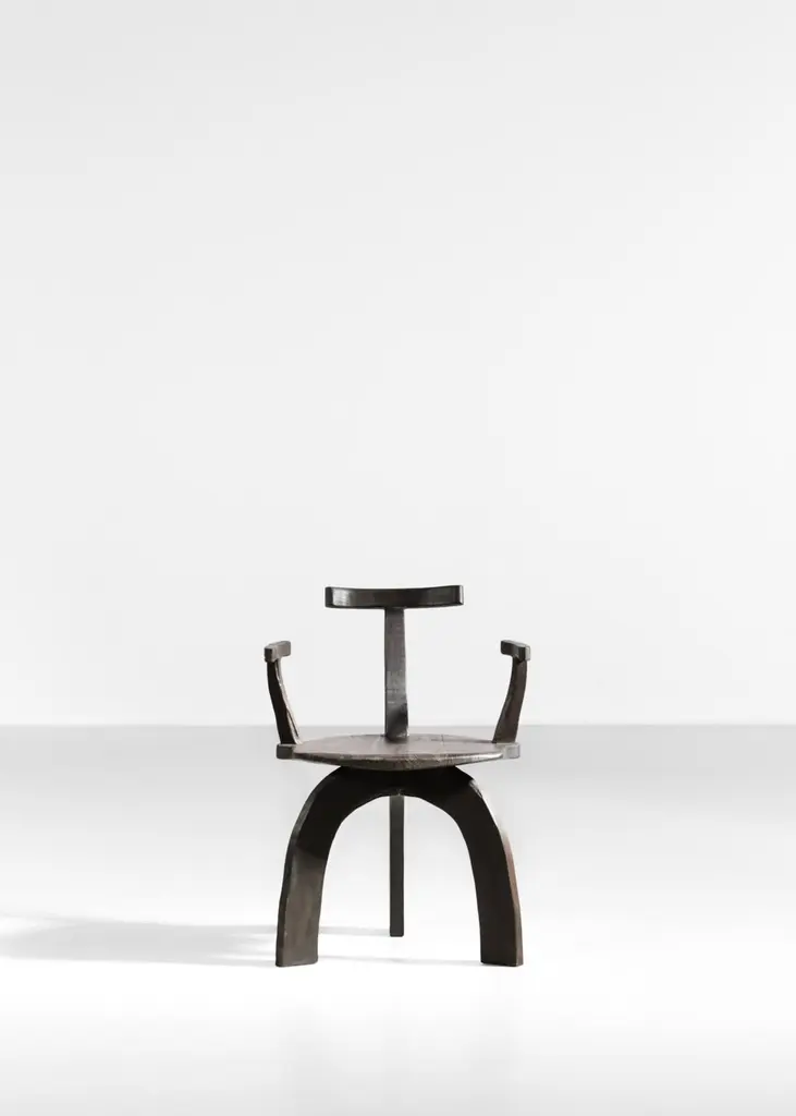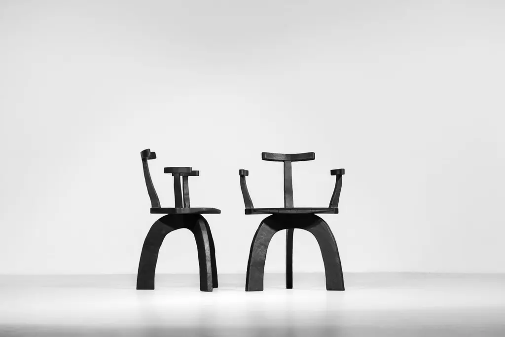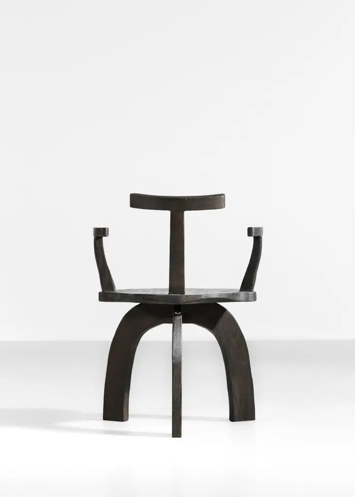 Set of 4 armchairs.We are pleased to present our new collaboration with Vincent cabinetmaker.Sculptural design, comfy and robust, each piece is unique.Entirely handcrafted by Vincent in his own warehouse.Every pieces are assembled by traditional tenon mortise joint (no screw)The burnt finish reveals the veins of the wood but also protect the wood.High quality work.In style of Pierre Chapo, Olavi Hanninen, Charlotte Perriand.