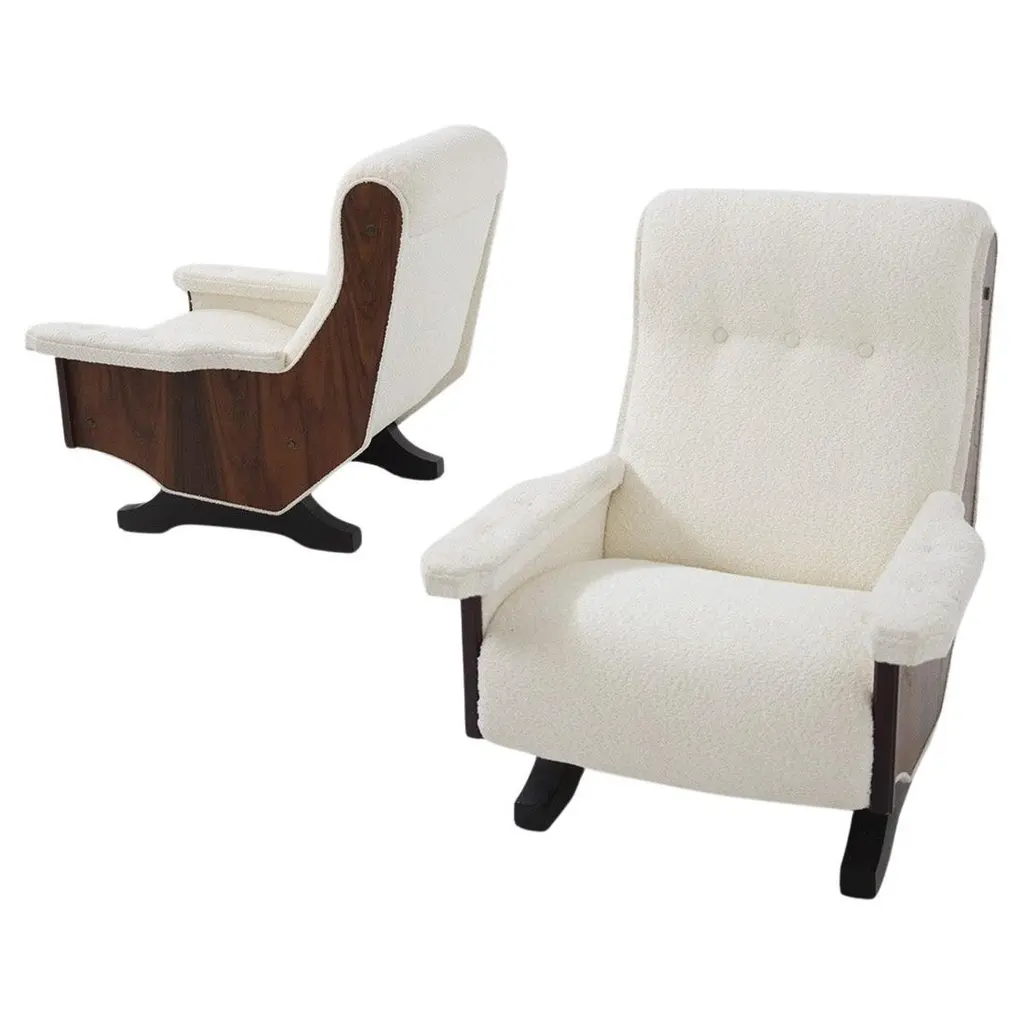 Pair Of Retro Style Swivel Armchairs In Boucle' & Walnut By Sebastian Herkner
