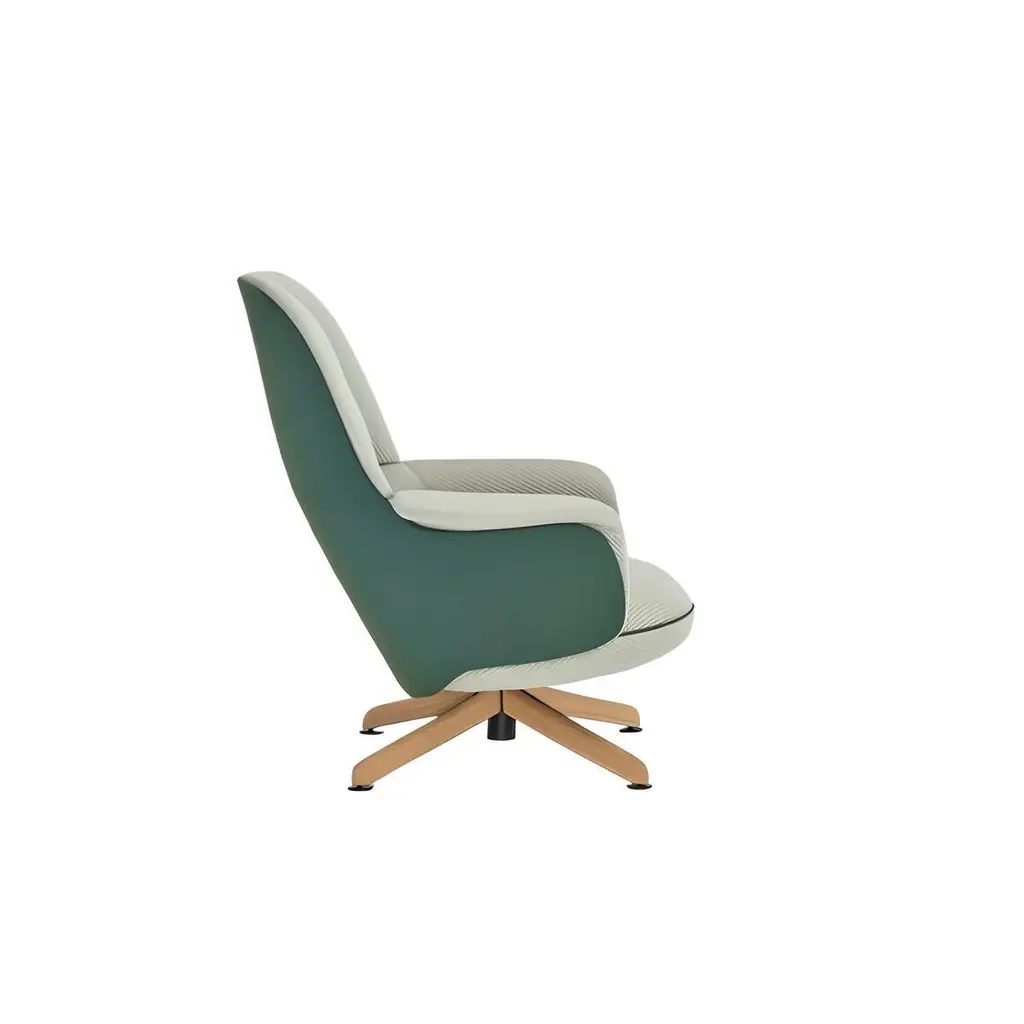 This stylish armchair features a high, upholstered shell and a solid oak wood base, providing a combination of comfort and durability. The unique design allows you to choose two different fabrics for the seat and the surrounding shell, creating a personalized and visually appealing piece.Contact us to enquire about COM/COL production, requirements and material shipping instructions.Please contact us if you have any questions about customization and pricing. We will be glad to check with the factory’s technical team if sizes, finishes, and colors can be customized. We do our best to expedite production and to ship and deliver product within the listed lead time, however current lead times might be longer due to global shipping backlog and delays. These delays are out of our control and cannot be a reason to cancel an order.