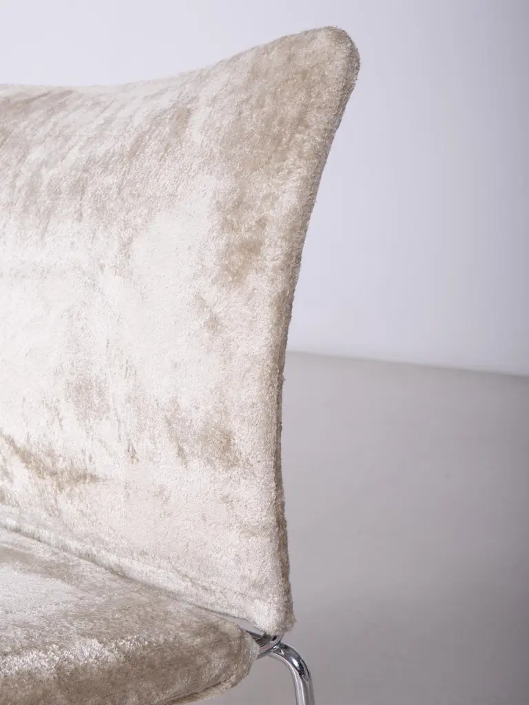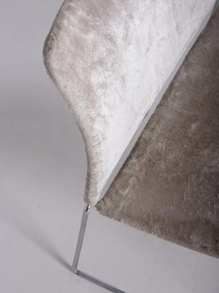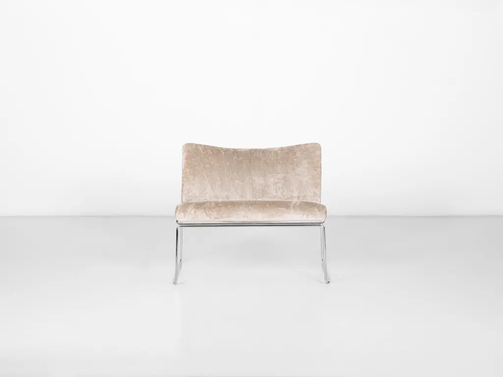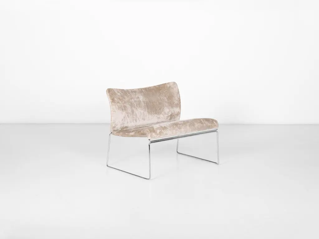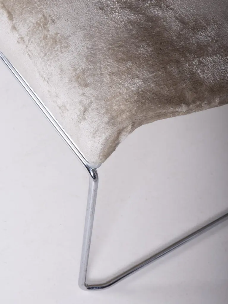 Pair of Saghi armchairs designed by Kazuhide Takahama. Two sets available. Structure in chrome-plated steel rod with original removable upholstery in velvet. Seat and backrest slightly padded. Light, elegant, spacious Saghi is a stackable armchair.BibliographyAccademia delle Belle Arti di Brera, “Dino Gavina Ultrarazionale Ultramobile”, Editrice Compositori, Milano 1998, p. 185Fondazione Scientifica Querini Stampalia, “Dino Gavina, collezioni emblematiche del moderno dal 1950 al 1992”, Jaca Book, Milano 1992, p. 79