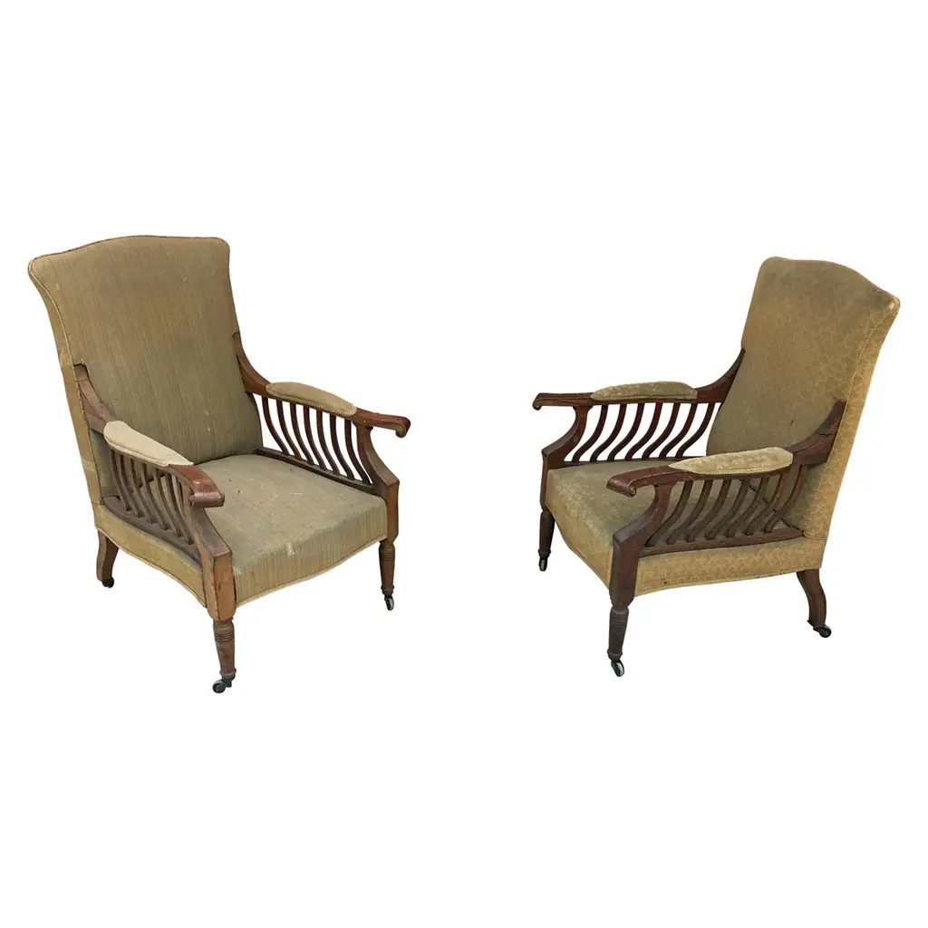 Pair Of Upholstered Linen Armchairs From France - Individually Priced