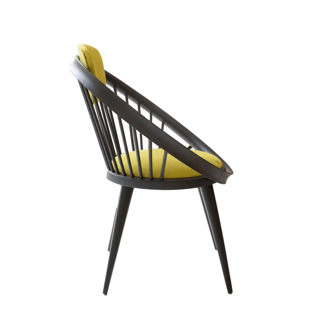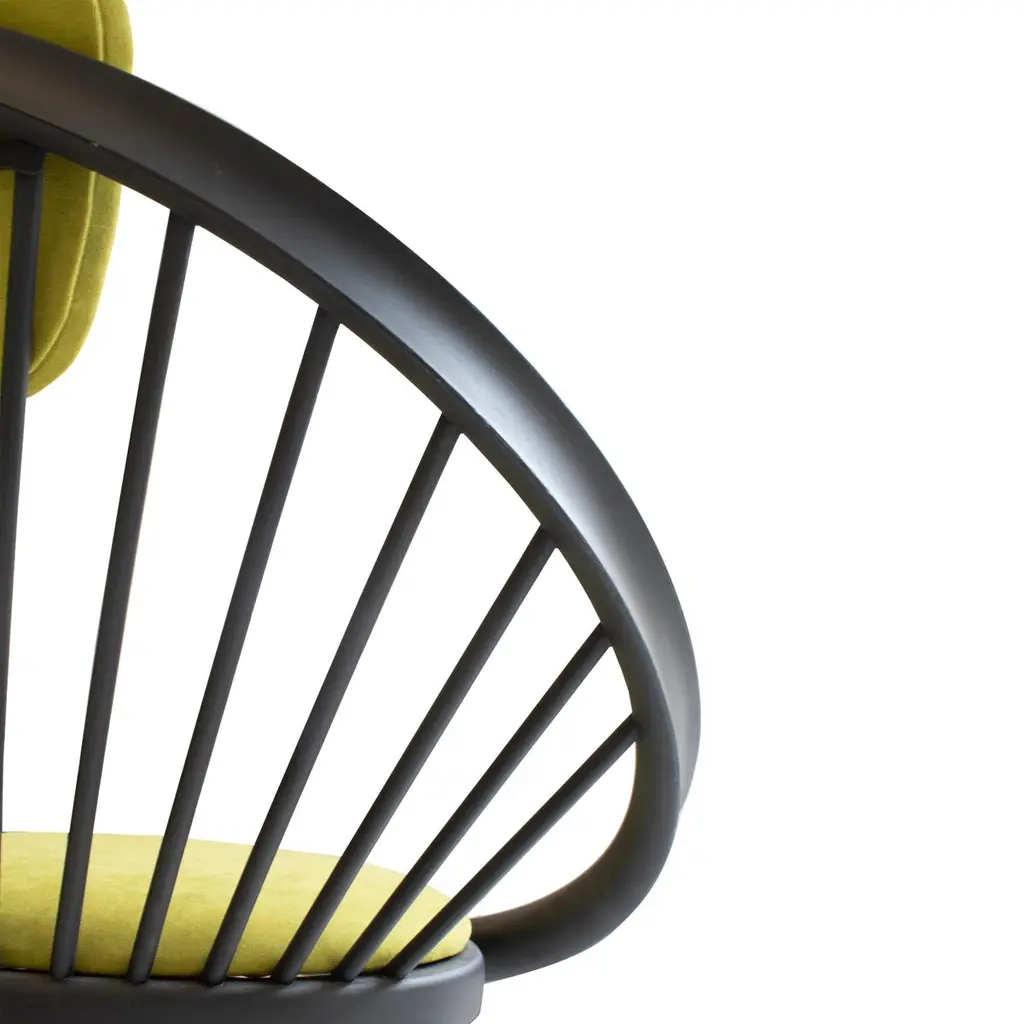 Pair of two armchairs designed in the 1960s by Swedish designer Yngve Ekström and manufactured by his own brand Swedese. The armchair is made of black lacquered solid wood with the seat and the back upholstered in green cotton fabric.