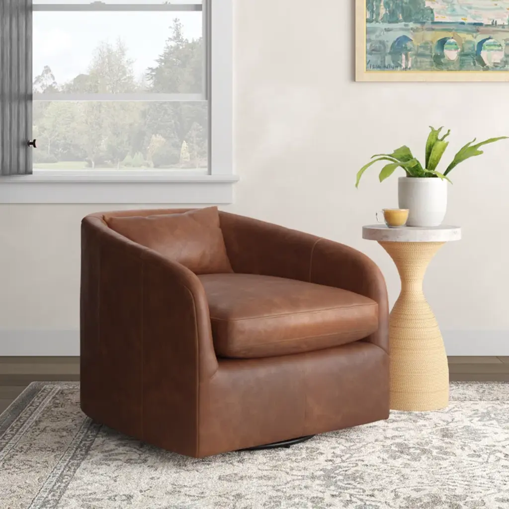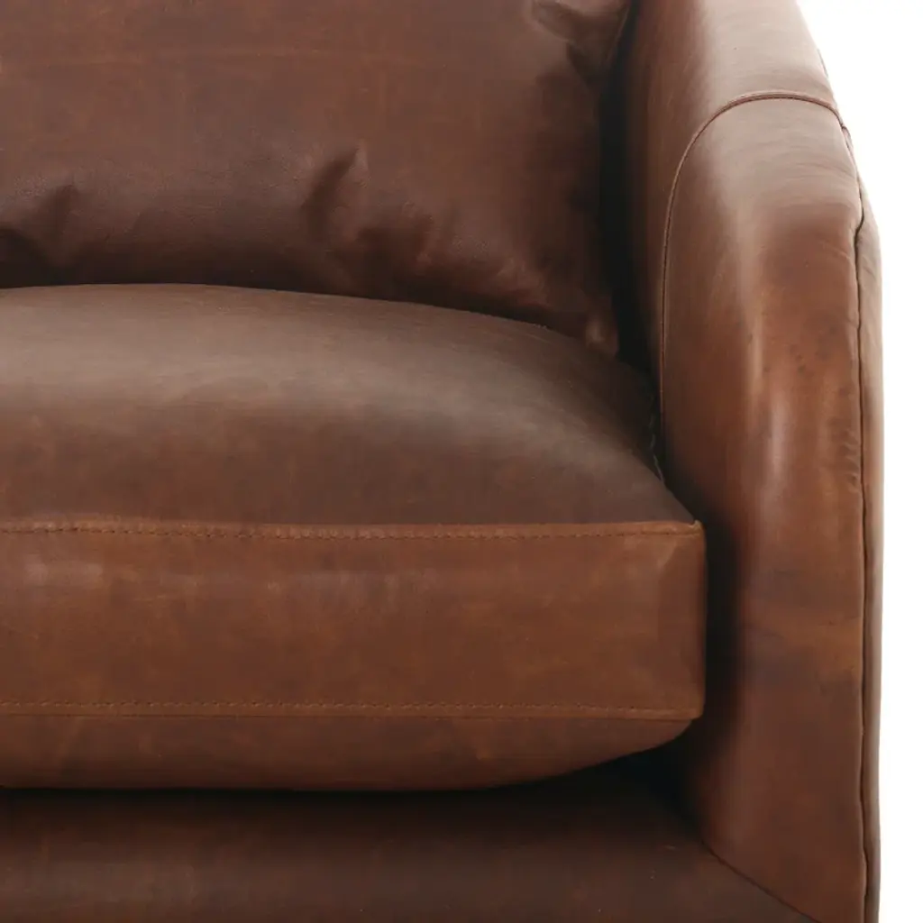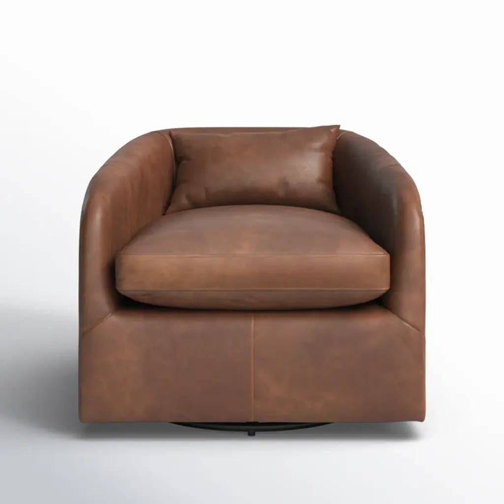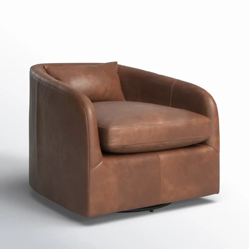 Curved arms and a single pillow create a laid-back look, while a hidden swivel turns a traditional form into something novel. Sourced from one of the oldest family-owned tanneries in Italy’s Bassano del Grappa, our top-grain heirloom leather covering is salvaged and processed from upcycled hides featuring an abundance of natural markings, scars, and color variations. The result? Beautifully supple, buttery soft hides with an unmatched depth of color and richness, and an authentic lived-in look.