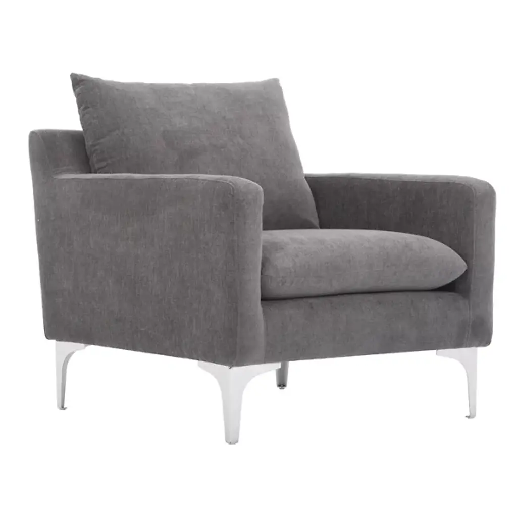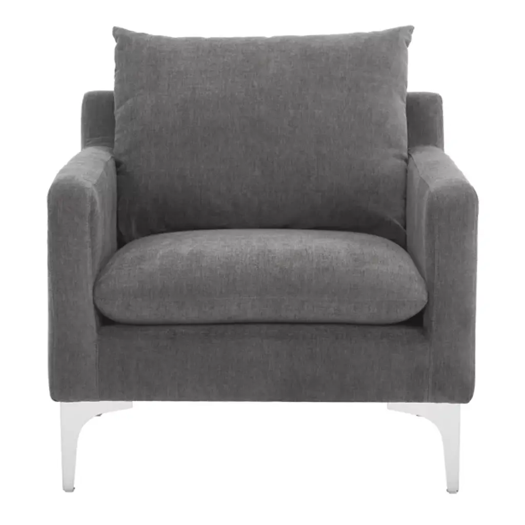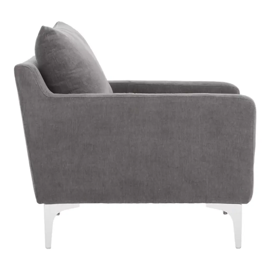 The Paris Armchair from Moe's Home Collection boasts a linear design. This armchair is upholstered with 100% polyester. Foam fill material provides additional comfort. Keener is bolstered by a durable frame of pine and plywood. Your armchair remains properly balanced by resting upon lovely, tapered legs of steel. This furnishment is supported by webbing. Keeping the well-being of our environment in mind, this armchair’s wood is sourced from responsibly managed forests