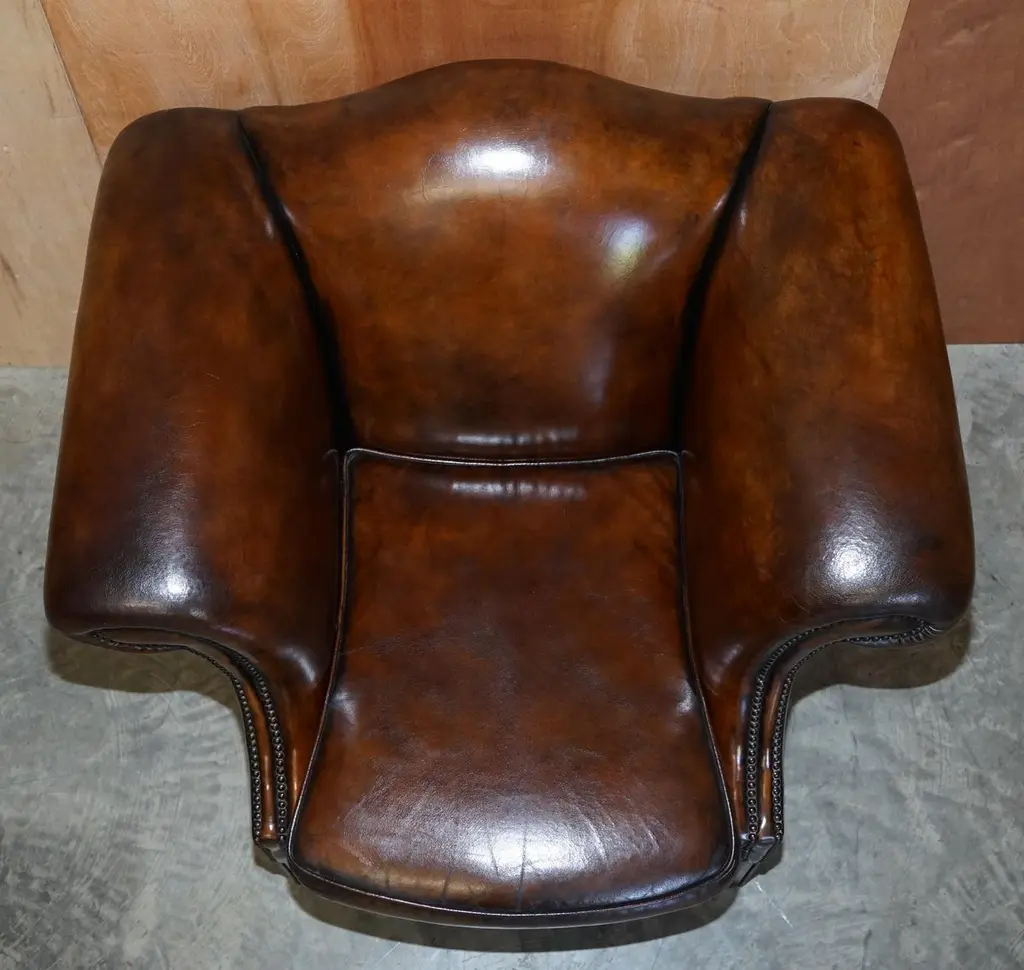 Part Of Large Suite This Lovely Pair Of Hand Dyed Brown Leather Club Armchairs
