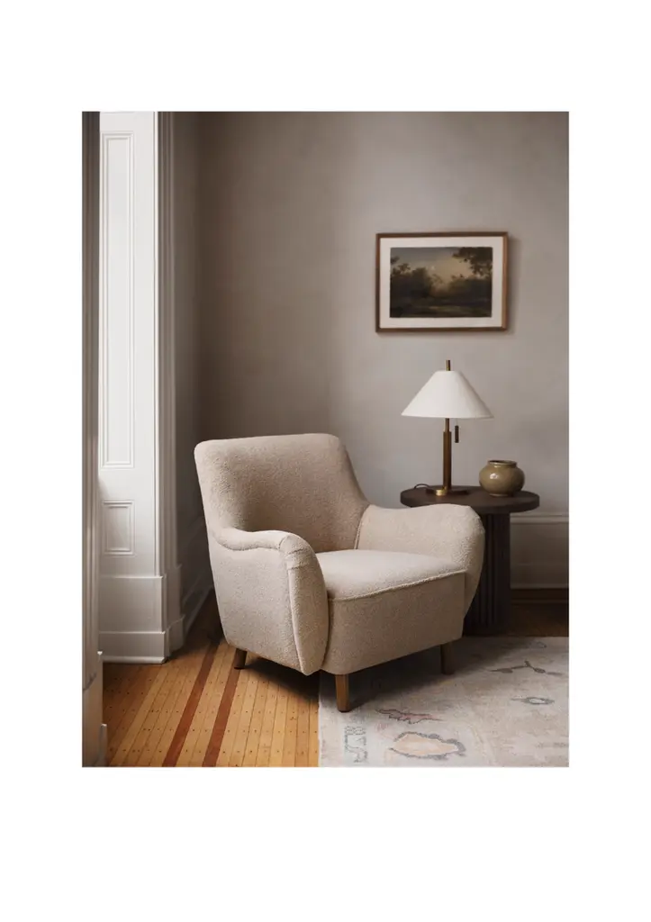 The Perry Chair marries a traditional silhouette with organic forms found in Scandinavian design. An ample, low-slung (yet soft) seat finds balance with a more structured back, while piping and pleating along its rolled arms add a special touch. Perry's shapely design especially elevates textured materials like boucle, making for an inviting seat that knows how to make a statement.