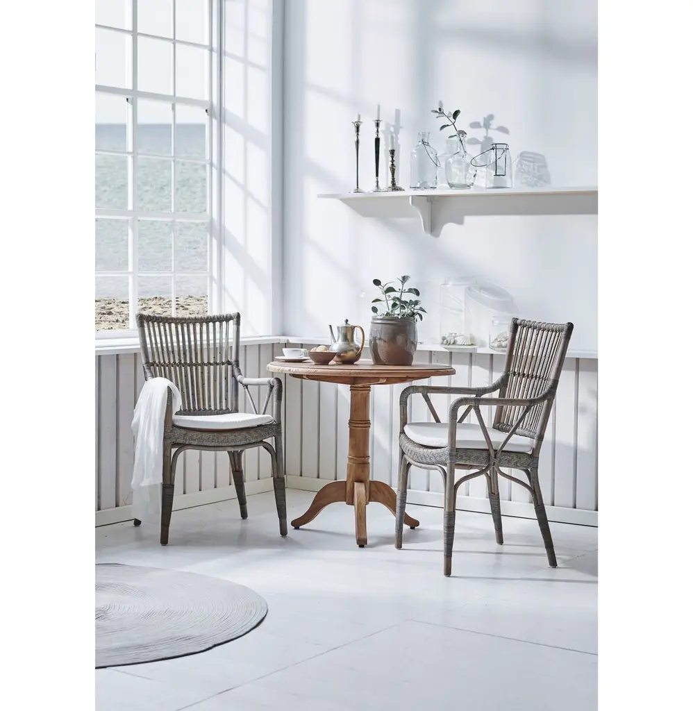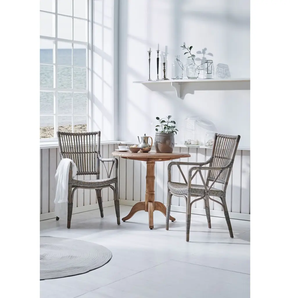 Inspired by sketches and production designs from the 1950s and '60s, this armchair is handcrafted of durable rattan with a woven wicker seat and wrapped reinforcements. Suitable for indoor use only.