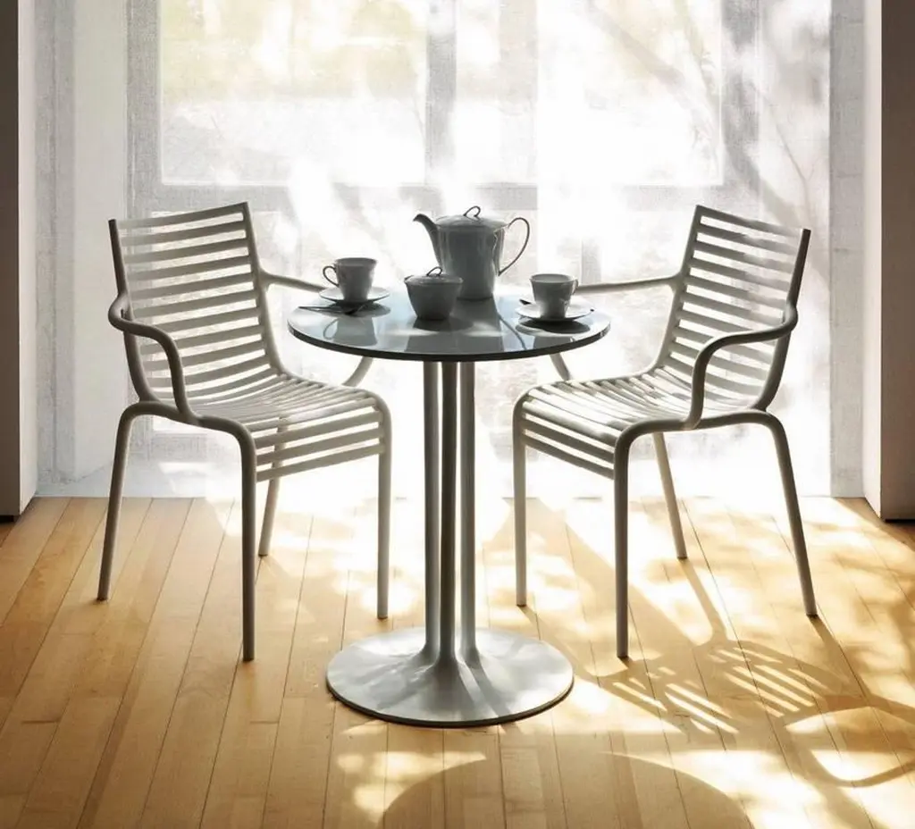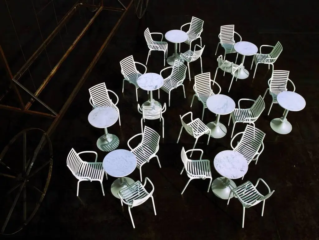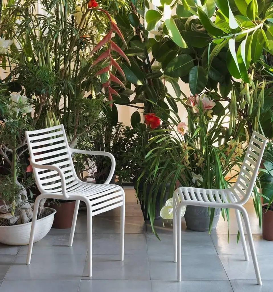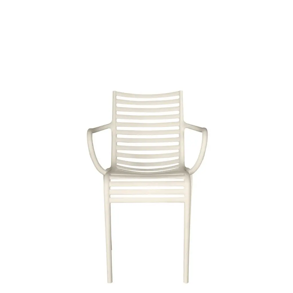 "PIP-e" is a stackable armchair, designed by Philippe Starck and manufactured by Driade, in polypropylene monobloc available in carnation, lavender gray, white or dark gray colors. Indoor and outdoor use. Packing unit is 4 pieces of the same color. White and dark gray versions only are available in quick ship.DIMENSIONS:D. 20.6", W. 21.4", H. 32.6", Seat H. 18.5"Even a classical piece of design such as the railed chair gets a particular look thanks to Philippe Starck. The sequence of horizontal elements creating the seat and the back definitely takes a strong chiaroscuro effect on and surprisingly goes on and follows the inner curve of the knees.PHILIPPE STARCK is an internationally acclaimed French creator, designer and architect. His profound comprehension of contemporary mutations, his determination to change the world, his anticipatory concern for environmental implications, his love of ideas, his desire to defend the intelligence of usefulness and the usefulness of intelligence have accompanied one iconic creation after the other.From everyday products such as furniture and lemon squeezers to revolutionary mega-yachts, individual windmills, electric bikes or hotels and restaurants that aspire to be wondrous, stimulating and intensely vibrant places. This untiring and rebellious citizen of the world, who considers sharing his ethical and subversive vision of a fairer planet as a duty, creates unconventional places and objects whose purpose is to be “good” before being beautiful.Philippe Starck and his wife, Jasmine, mostly live on an airplane or in “middles of nowhere”.