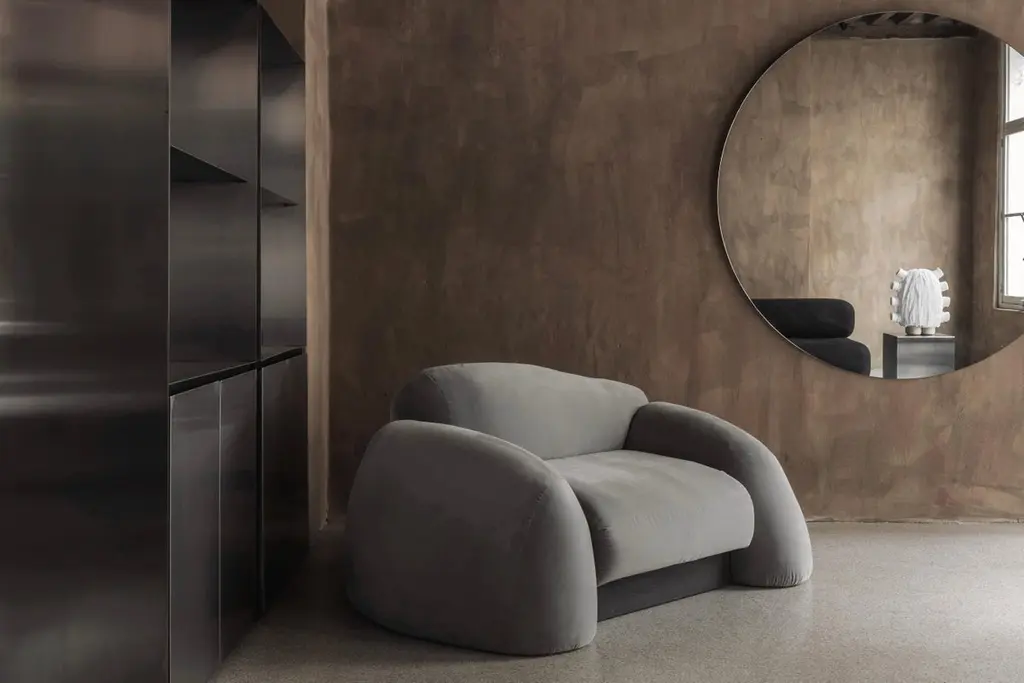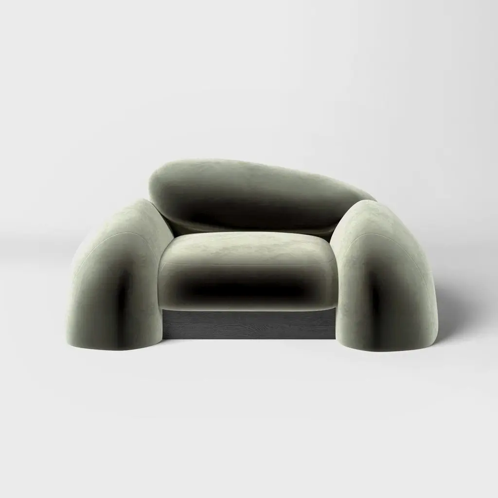 The PLYN collection (meaning "fluidity" in Ukrainian) eloquently embodies the essence of water and the adaptability of life itself. Inspired by the ever-changing forms of nature, PLYN mirrors the graceful transformation that comes with life’s ebb and flow. Its design captures the interplay of fluidity and stillness, drawing a profound connection to the untamed beauty of water and its ability to shape the world around it.The collection includes an upholstered sofa, armchair, and a bench, each resembling coastal stones or pebbles. These organic shapes seem to have been naturally smoothed by the persistent touch of water over time. The soft contours and naturalistic forms make these pieces not only visually striking but also a tactile experience, evoking a sense of calm and balance.MATERIAL: textile, foam rubber, sintepon, ash.Colors palette: more than 100 colors in 5 categories areavailable.Please kindly note that handcrafted items may slightlydiffer in shades and textures.Only for indoor use.The armchair has a soft seat and backrest.Upholstery is not removable.Seat softness and elasticity: Medium firm.Recommended load < 120 kgMostly made to order.