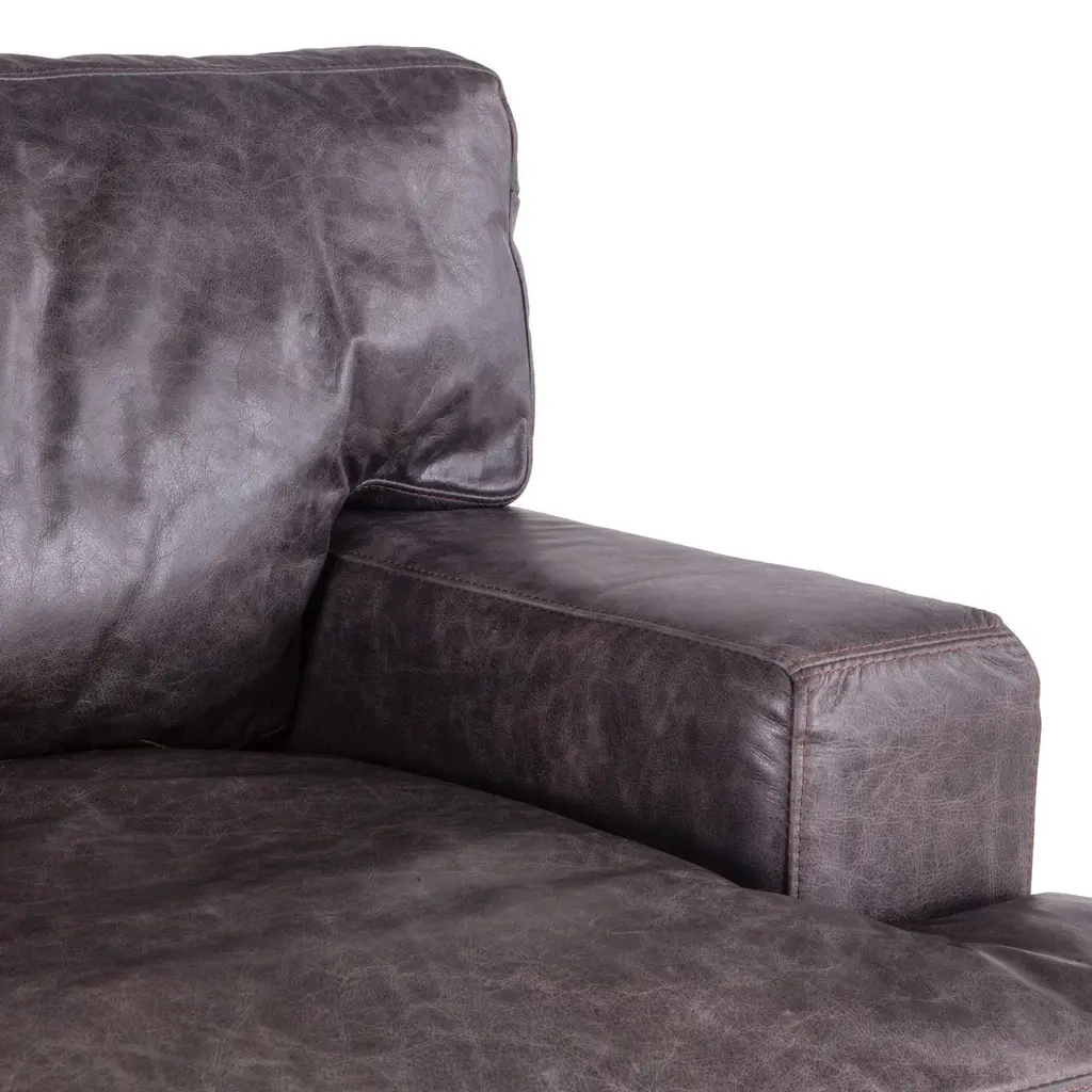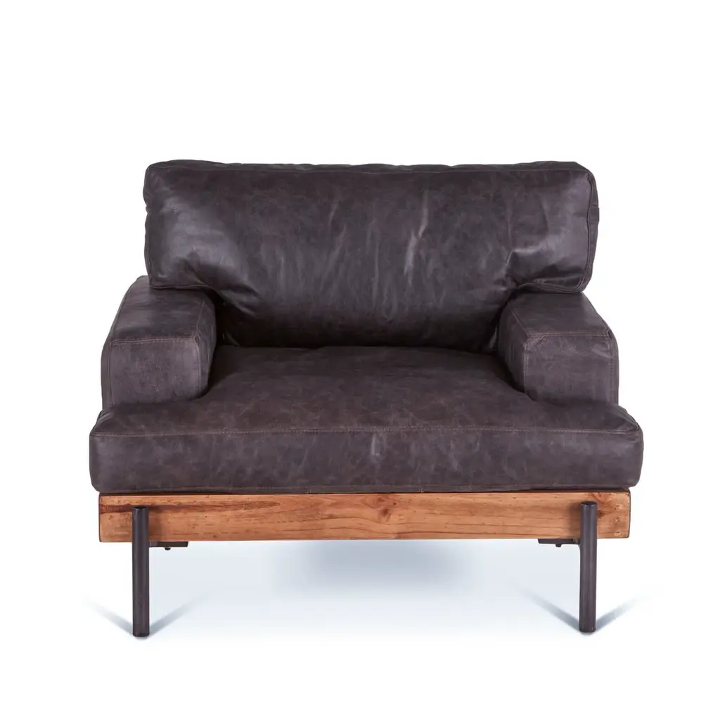 Featuring clean lines and classic comfort, the Portofino leather arm chair is a beautifully cozy piece for your lounge area. But it's got more than just style—this eco-friendly piece is made from reclaimed wood and reclaimed leather, giving it an extra dimension of appeal. Reclaimed leather has a naturally aged appearance. See the full range of Portofino lounge furniture here.
