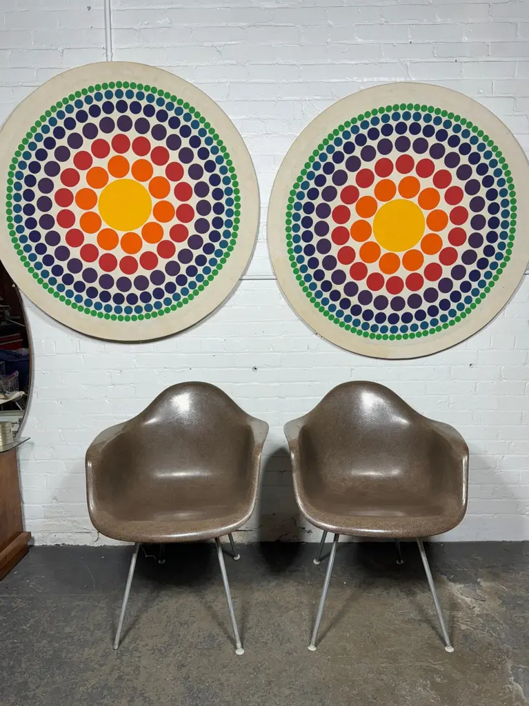 Pr 1950s Charles & Ray Eames Dax Fiberglass Shell Armchairs/ Tan Dark