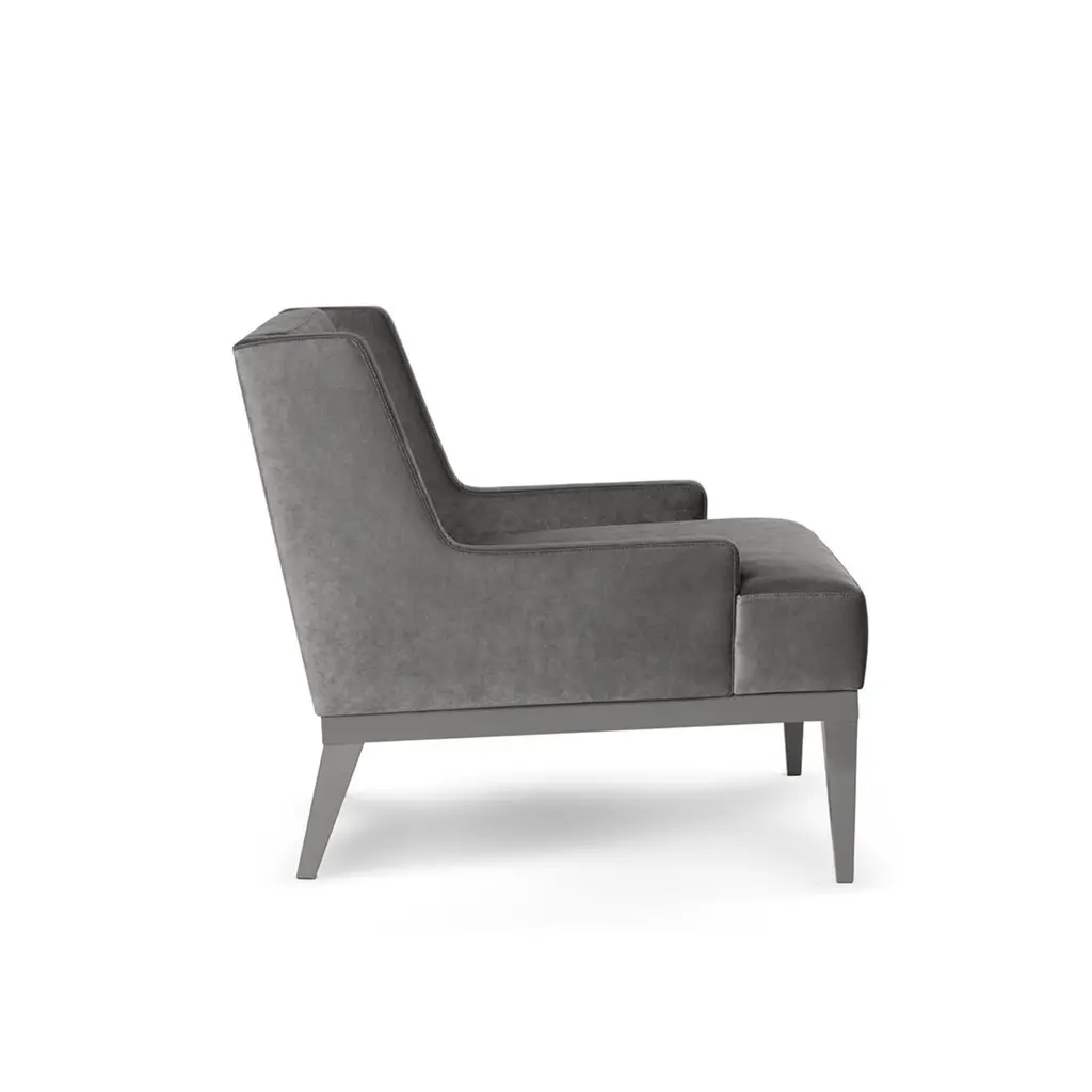 Private Armchair by MunnaDimensions: D 90 x W 87 x H 77 cm. SH: 42 cm.Materials: Wood, foam, and upholstery.Finish: Trevira Velvet, ref. Anthracite, TRV20, and gloss lacquer.Available in all Munna fabrics except Wild Silk. Available in client’s ownmaterial. Available upholstered, Rosewood or Ebony veneer, solid Walnut, Wengé stain, or lacquer in all RAL colors, in matt or gloss. Fire retardant interlining is available on request. Handmade in Porto. Please contact us.Established in Porto in 2008, Munna is a furniture design brand renowned for creating handmade upholstery with unmatched craftsmanship, seamlessly blending noble materials and timeless design, for both commercial and residential projects.Made by hand in Porto, Munna’s pieces honor the profound heritage of craftsmanship, while drawing inspiration from history’s most influential artistic periods. Munna’s pieces are made of the finest fabrics such as cotton velvet, twill, leather, and silk; the finest wood veneers, such as ebony, walnut, and rosewood; sumptuous gold, silver, and copper leaves, metal details in brass, nickel, and copper, and superior lacquers.