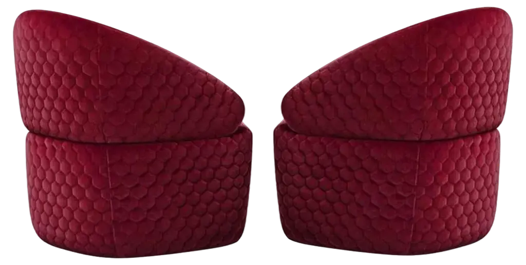 Based on a design by Leonardo da Vinci and offering a wrap-around seating experience, this mesmerizing armchair featuring aluminum joints reproduces with its bold look the sharp and voluptuous charm of a quartz shell. Crystal-like elements, that are softly padded, upholstered in textured shades are set into the beehive-shaped frame in sturdy beech finished with a shiny lacquered polish. Crystals are singularly manufactured, making the design truly unique.