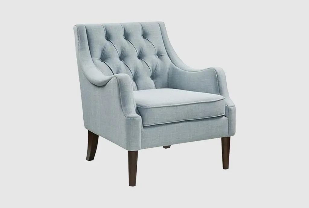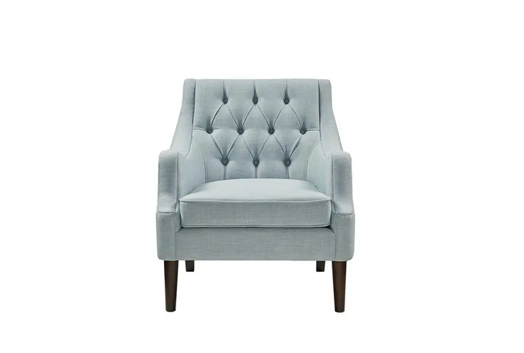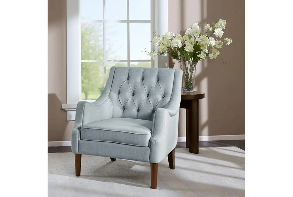 Qwen Dusty Blue Tufted Fabric Accent Arm Chair
