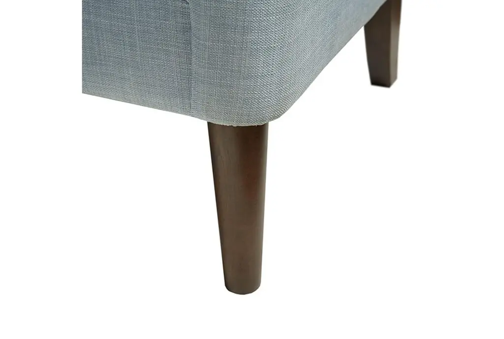 The Qwen Dusty Blue Tufted Fabric Accent Arm Chair brings traditional elegance to your living space. Its decorative button-tufted details and rich dusty blue upholstered fabric create a timeless armchair silhouette with slope arms and dark coffee finish. This design is the perfect bedroom chair, reading chair, club chair or accent chair for living room.