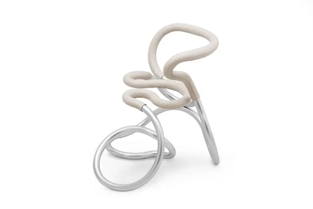 Aranda\Lasch continues to explore and test out various furniture forms from their latest Railing Series, a series of design pieces that utilize bent tubes and furnished with leather of foam outside. Railing chair (R1 and R2) and railing stool (R3) are the initial prototypes the railing system continues Aranda\Lasch’s research into modularity through a novel language of modular curves.Armchair, leather upholstered chair
