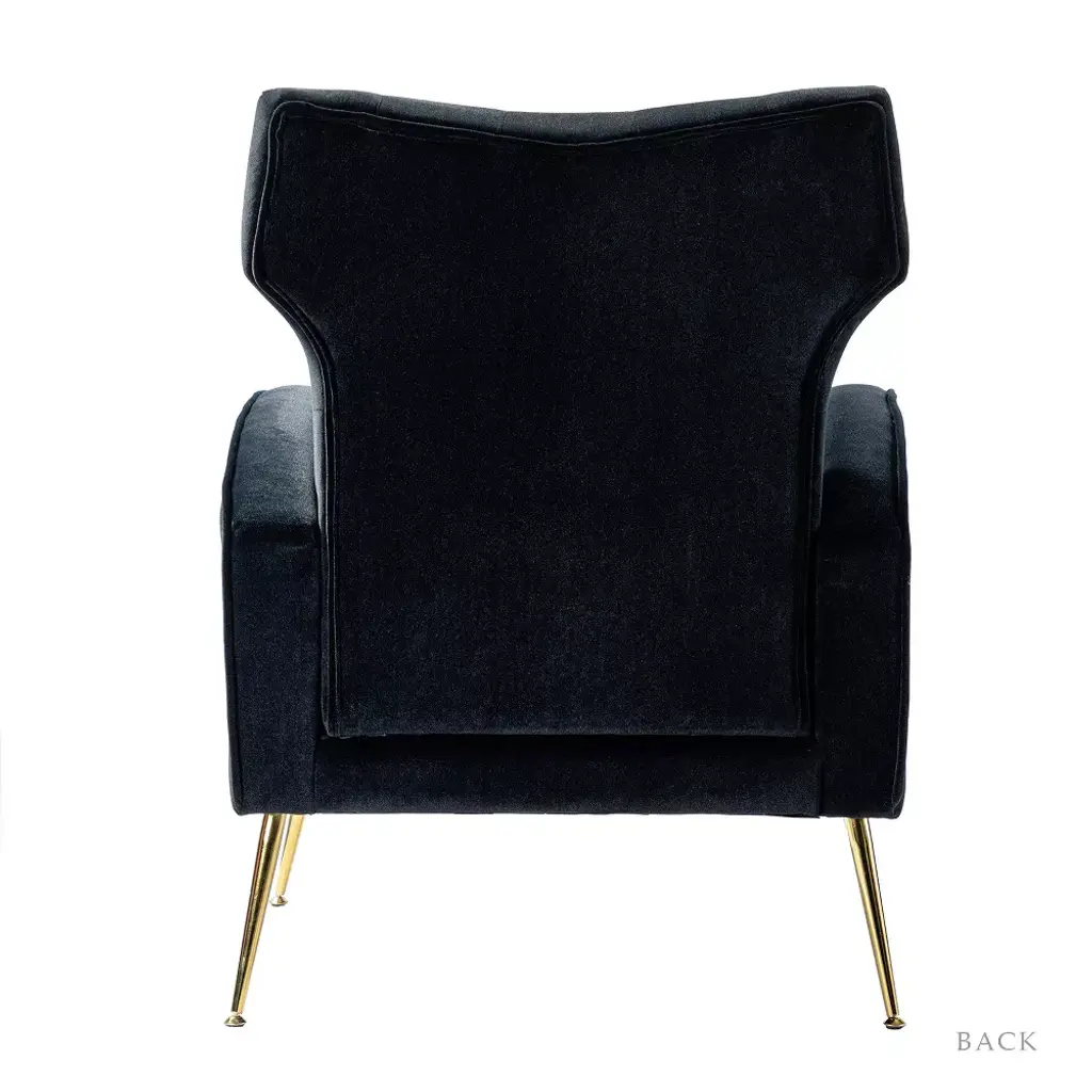 Whether you need a spot to curl up with a good book or somewhere to lay out clothes for the next day, this streamlined accent chair is a versatile addition to your space. This is the classic and contemporary style accent chair with wingback design. Made with premium velvet fabric, comfortable for skin touch, and features an on-trend solid hue that’s bound to blend in with your color scheme. High-density foam filling with a solid and manufactured wood frame provides comfort and support. The slender polished golden metal legs bring modern design and add to the timeless fashion of this piece.Plus, this armchair is defined by an iconic silhouette with a dramatic button tufted back and piped edges, while the chair features detail stitching for a tailored touch. It's the perfect pick for living room, office room and bedroom.Item Size: 28"Wx32.5"Dx37"H, Seat Size: 20"Wx22"Dx18"H