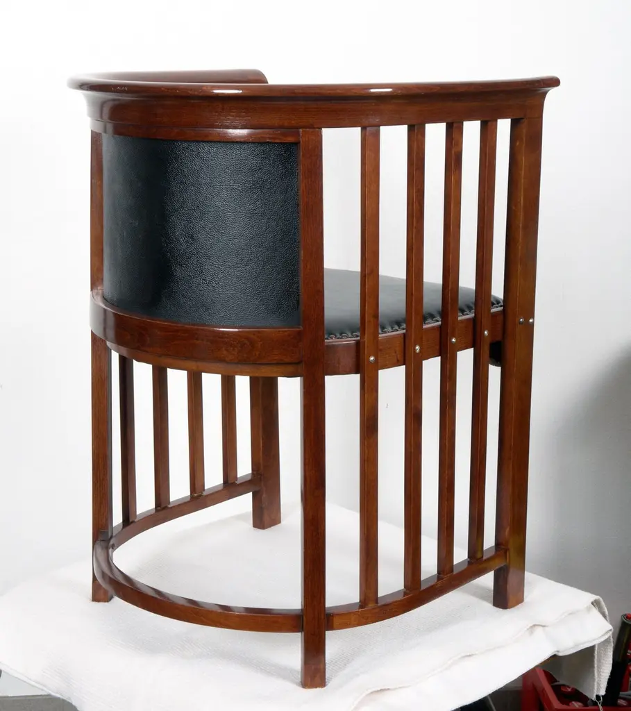 Rare beech bentwood frame, leather upholstery. Designed circa 1900-1910 by Josef Hoffmann for Cabaret Fledermaus in Vienna. Made by Thonet.Delivery time about 4-6 weeks. Price per chair.