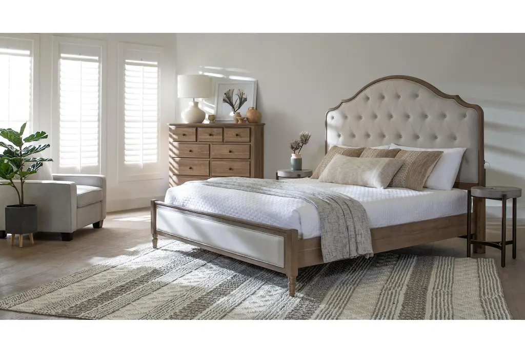 Introducing the Reid Buff Beige Fabric Arm Chair, perfect for adding a touch of contemporary style to any living room, bedroom, or dorm. This armchair is designed with comfort in mind, offering a firm seating experience combined with the durability of hardwood, engineered wood, fabric, foam, and metal construction. Its neutral beige color effortlessly blends with various decor styles.