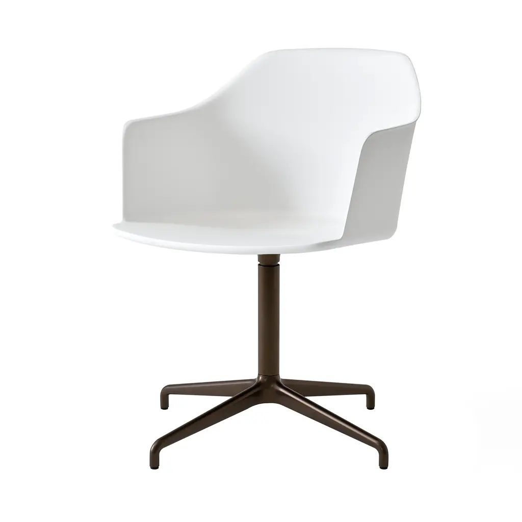 To its sustainable molded seat, Rely from designer Hee Welling adds a version with a swivel base equipped with automatic return. Fashioned in 100% recycled plastic, the shell curves comfortably around the body and extends out along the side to provide optimal back support. Available in typically Nordic neutrals and subtle colors, the molded seat gets teamed with black, bronzed or polished aluminum finishes for its base, delivering standout seating for desk or dining use.