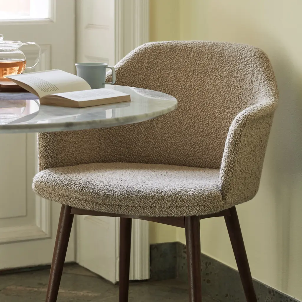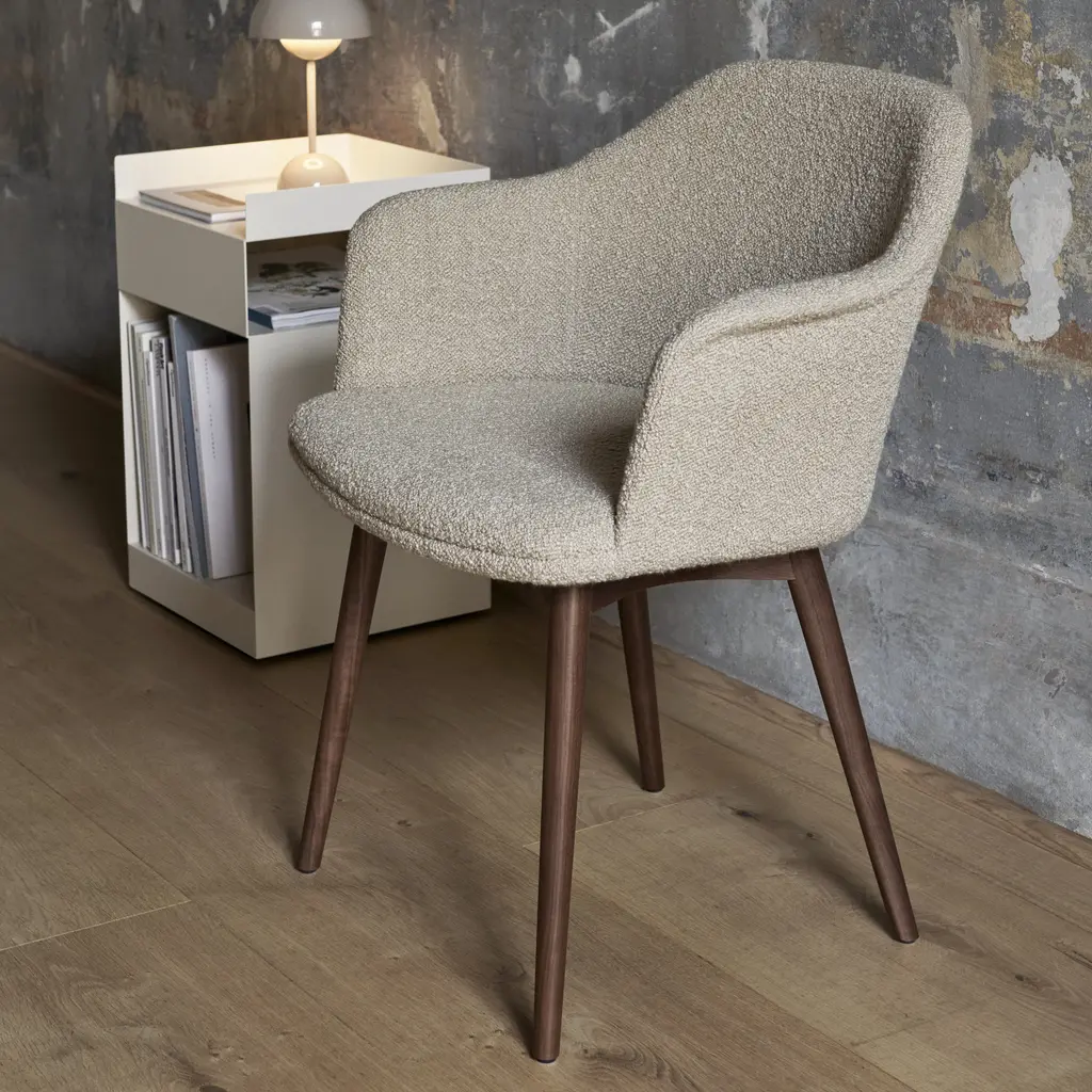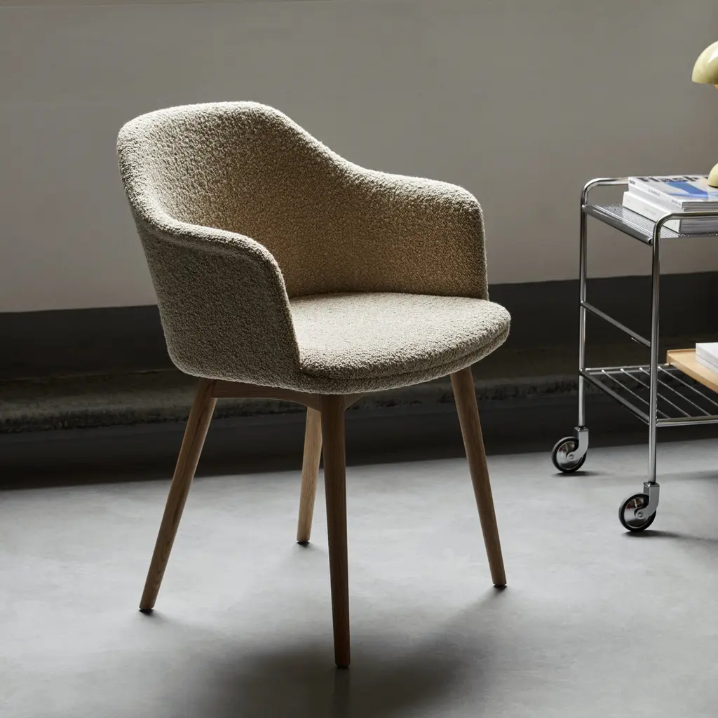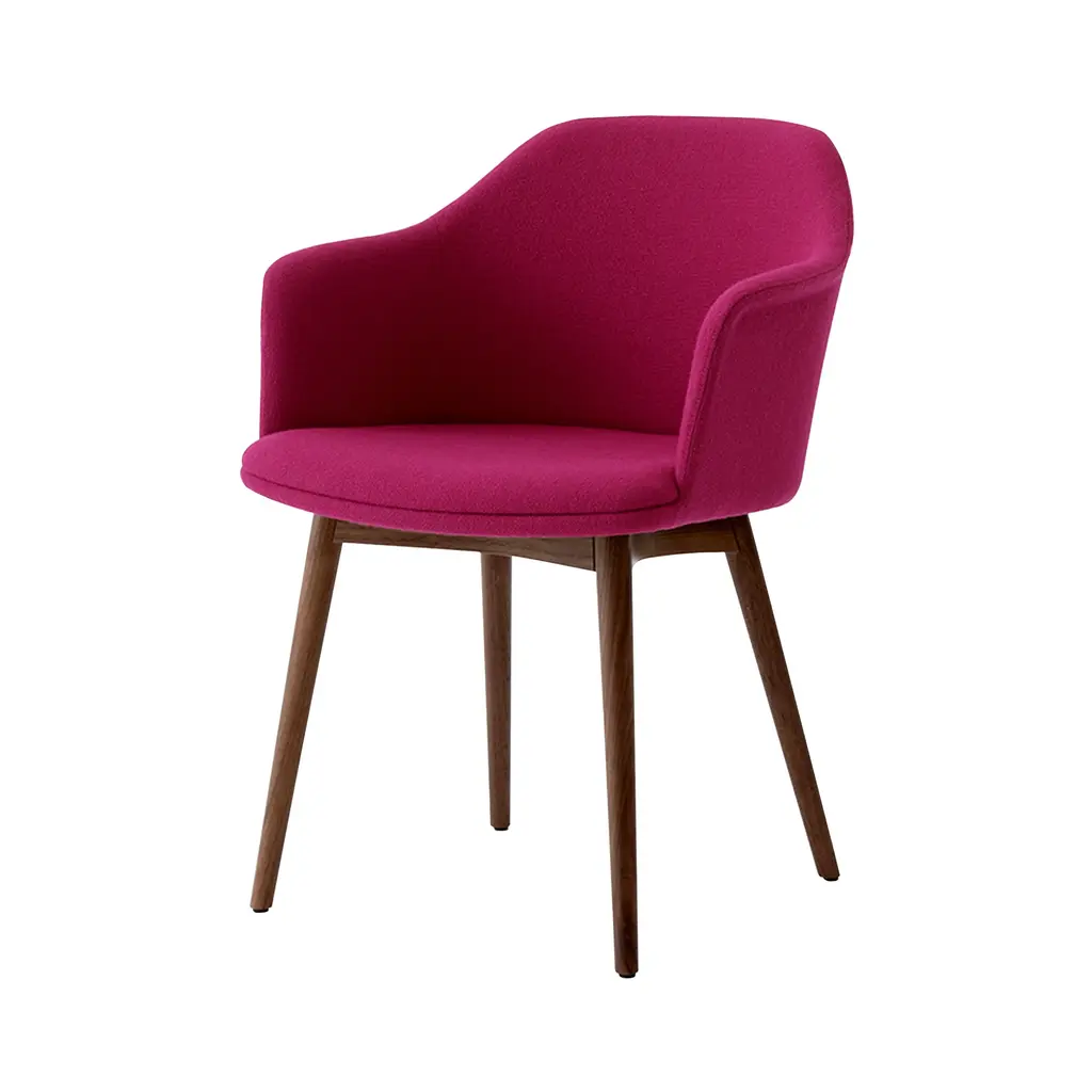 To a completely upholstered version with a matching seat cushion, the Rely series adds the tactile contrast of rich woodgrain legs in oak or walnut. Starting with the sustainable molded shell in 100% recycled plastic, designer Hee Welling’s smoothly contoured rendition of a Scandi classic delivers lasting comfort and timeless style. Customize the seating with a wide selection of fine fabric or leather options upholstered over HR foam to suit either contract or residential settings.