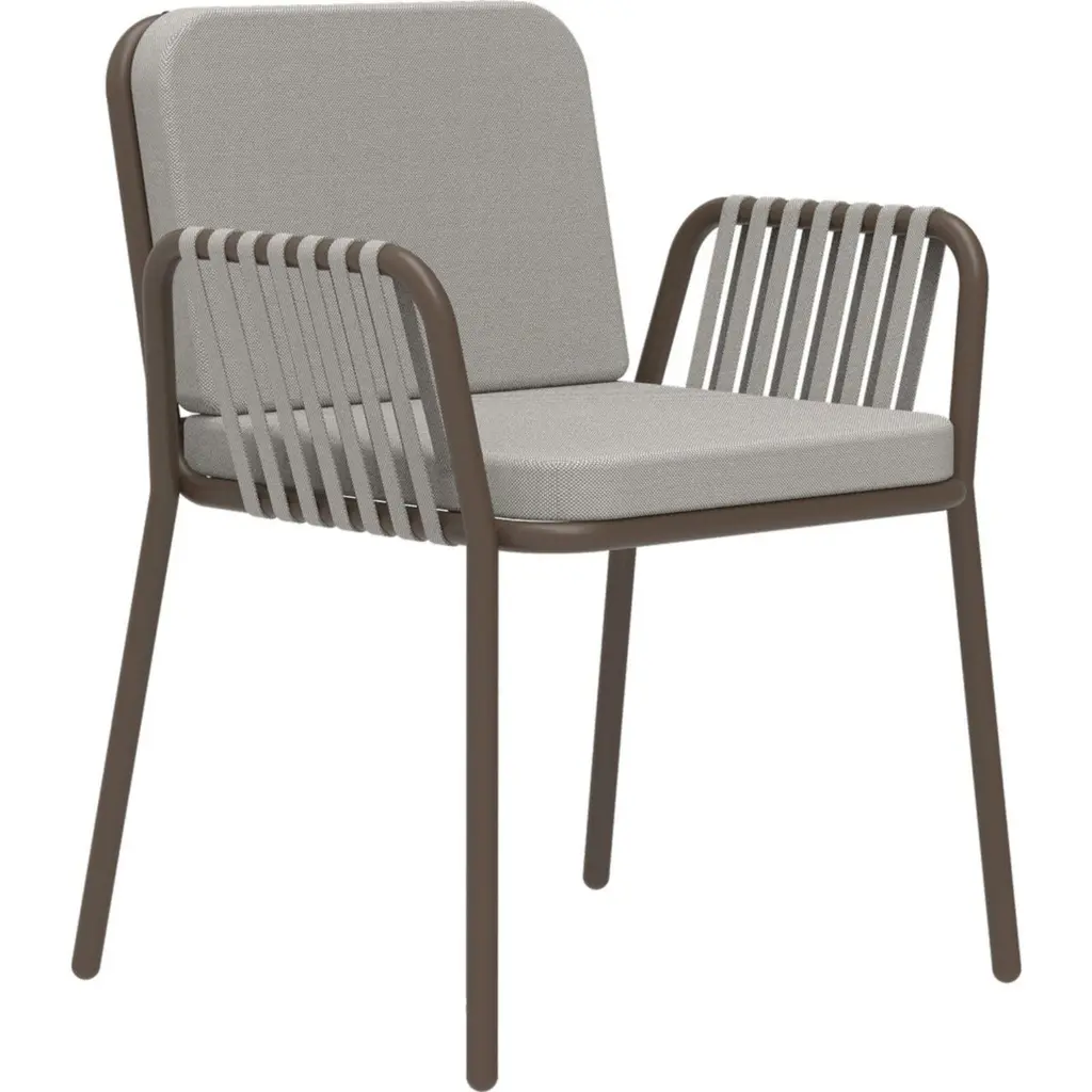 Ribbons bronze armchair by MOWEEDimensions: D60 x W62 x H83 cm (seat height 48).Material: Aluminum and upholstery.Weight: 5 kg.Also available in different colors and finishes.An unmistakable collection for its beauty and robustness. A tribute to the Valencian manufacturing tradition as a challenge to innovation, making it sustainable and durable. A collection with details that make it unique. We discover its most representative side, Ribbons. Engineering and tradition come together, thus achieving a collection with its own character.Möwee is part of the work, effort and commitment of Gaviota, a leading company in the outdoor sector. It was set up as an independent venture to broaden horizons in the outdoor furniture world, with its own distinctive character and way of doing things. Freshness, simplicity, quality and design are at the heart of its DNA.