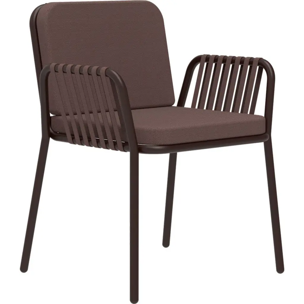 Ribbons chocolate armchair by MOWEEDimensions: D60 x W62 x H83 cm (seat height 48).Material: Aluminum and upholstery.Weight: 5 kg.Also available in different colors and finishes.An unmistakable collection for its beauty and robustness. A tribute to the Valencian manufacturing tradition as a challenge to innovation, making it sustainable and durable. A collection with details that make it unique. We discover its most representative side, Ribbons. Engineering and tradition come together, thus achieving a collection with its own character.Möwee is part of the work, effort and commitment of Gaviota, a leading company in the outdoor sector. It was set up as an independent venture to broaden horizons in the outdoor furniture world, with its own distinctive character and way of doing things. Freshness, simplicity, quality and design are at the heart of its DNA.