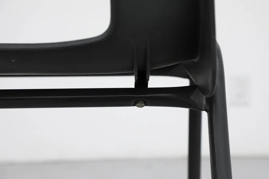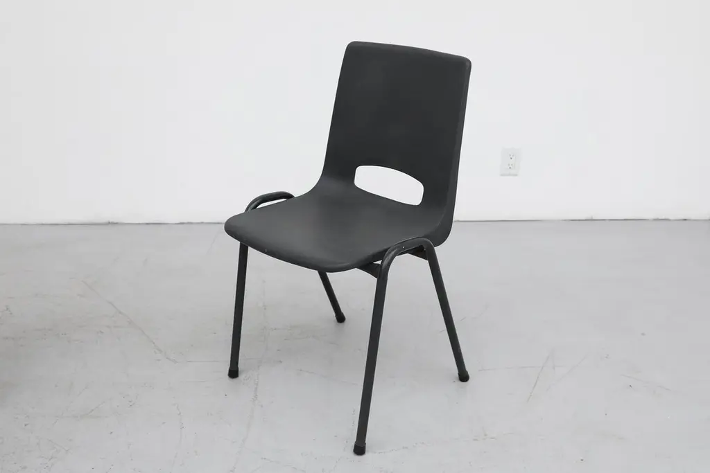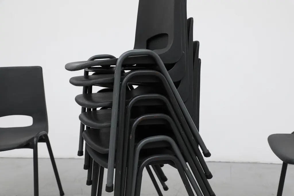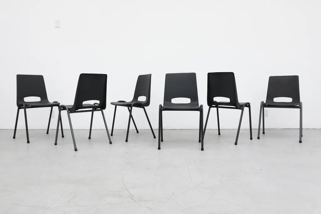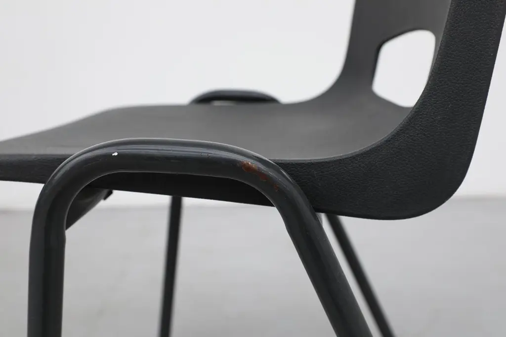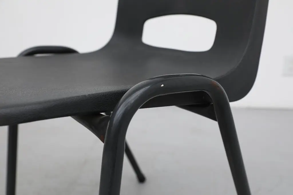 Robin Day Inspired Dark Gray Plastic Stacking Armchairs With Gray Metal Legs