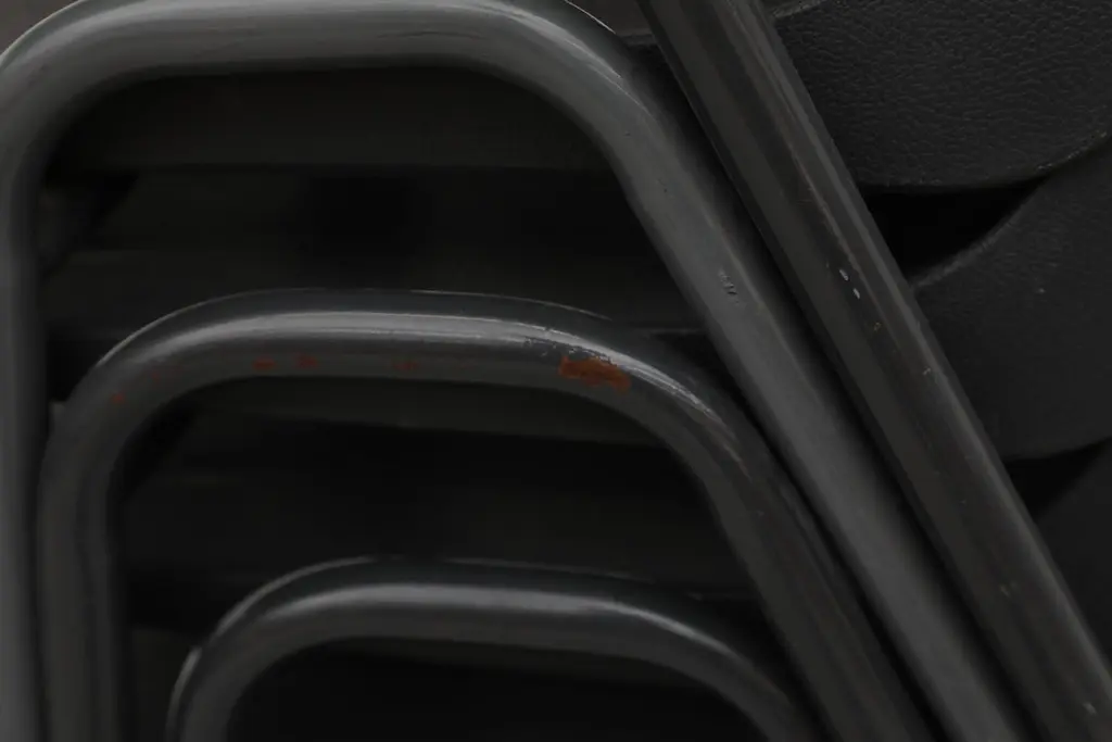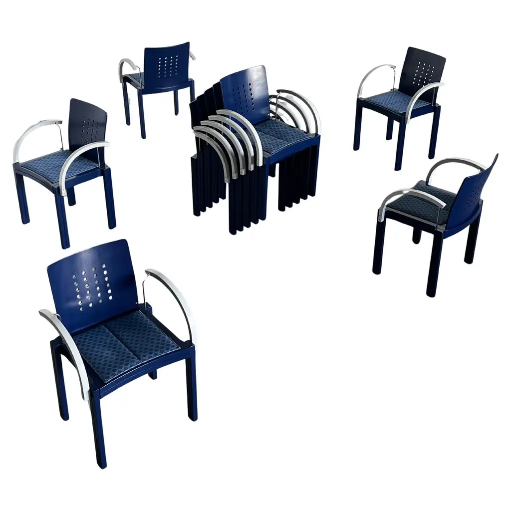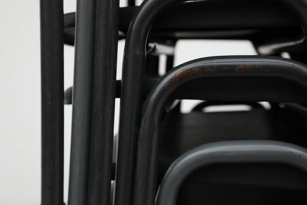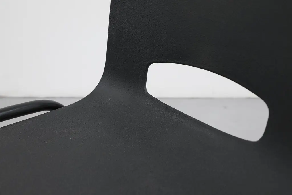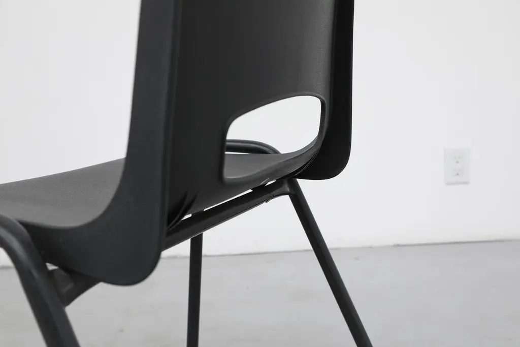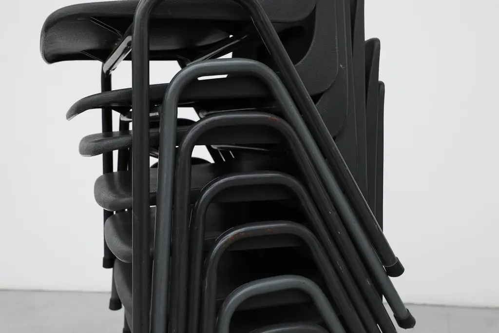 Robin Day Inspired Dark Gray Plastic Stacking Armchairs With Gray Metal Legs