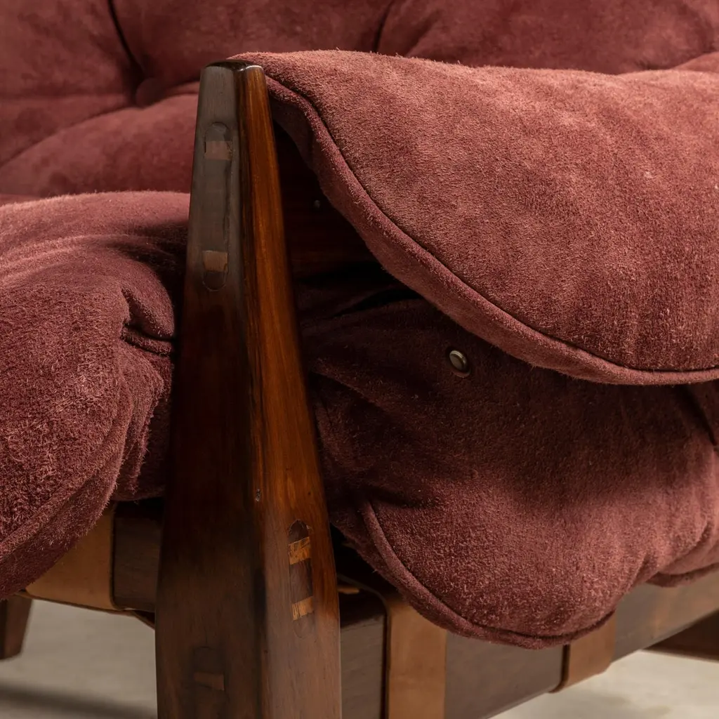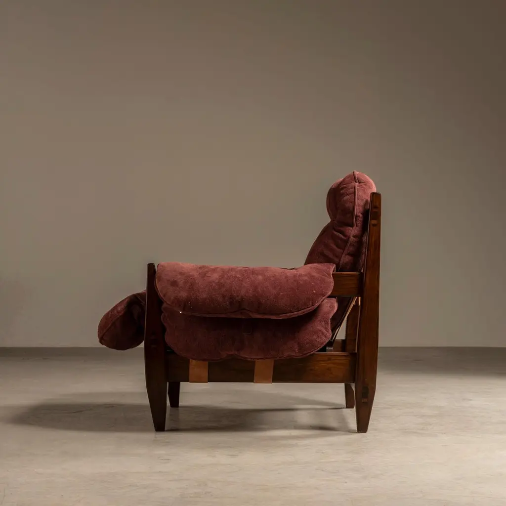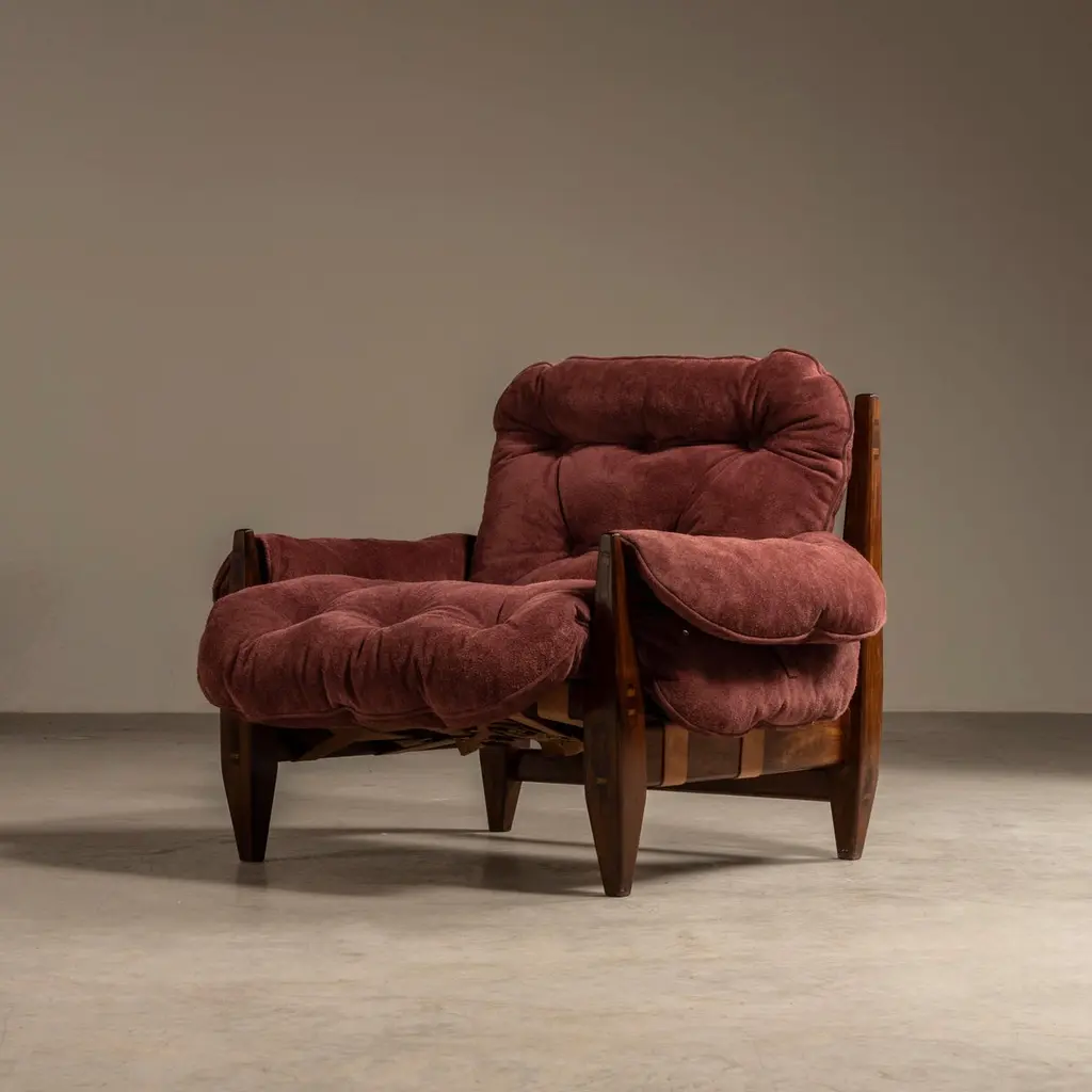 The Rodeio armchair is an iconic piece that perfectly represents the main characteristics of Brazilian design as a school. It is one of the most outstanding creations of Jean Gillon, a Romanian artist who has left an indelible mark on Brazilian design. The piece is not only remarkable for its stunning design, but also for its exceptional comfort and solid Brazilian hardwood structure.The armchair's design is both modern and timeless, with clean lines and a bold shape that exude sophistication and elegance. The piece's remarkable ergonomic features, along with its soft cushions, make it one of the most comfortable chairs you will ever sit in.This armchair was restored by one of our best craftsmen in São Paulo, who has managed to preserve its original aura and attraction. Every inch of the armchair was carefully restored to its original glory, so it's ready to grace your home with its unmistakable style.Jean Gillon moved to São Paulo in 1956 and his love for Brazil, its natural resources, and culture, was reflected in his work. Jacaranda Brazilian rosewood was a material often used in his pieces, and it gives the Rodeio armchair its remarkable texture and character.The Rodeio armchair is a perfect example of Brazilian design as a school. It is a piece that combines style and comfort, beauty and functionality. This armchair is a must-have for those who appreciate design that is not only beautiful, but also functional and comfortable. It is a true gem that will add a touch of elegance to any interior.