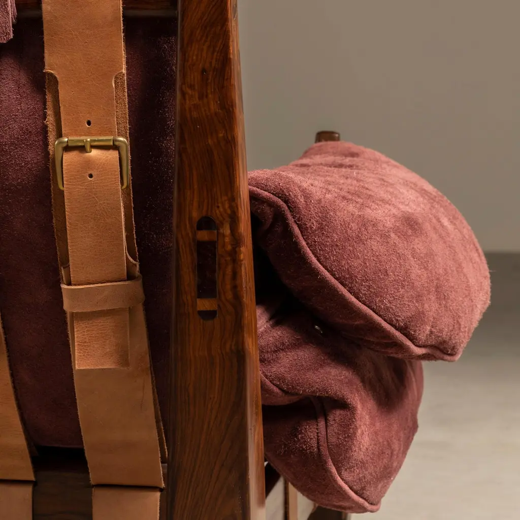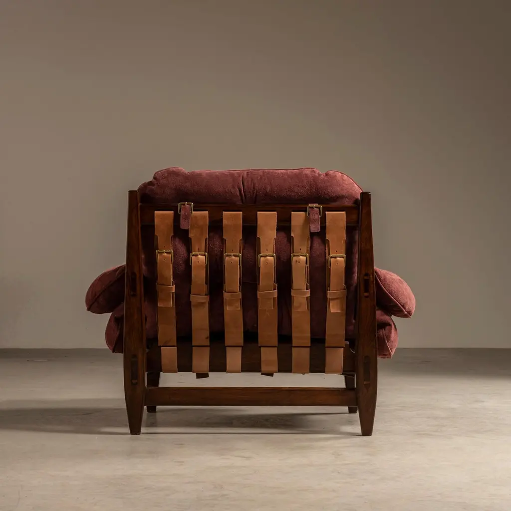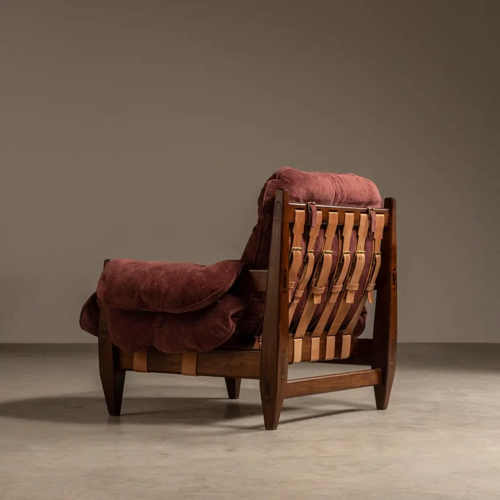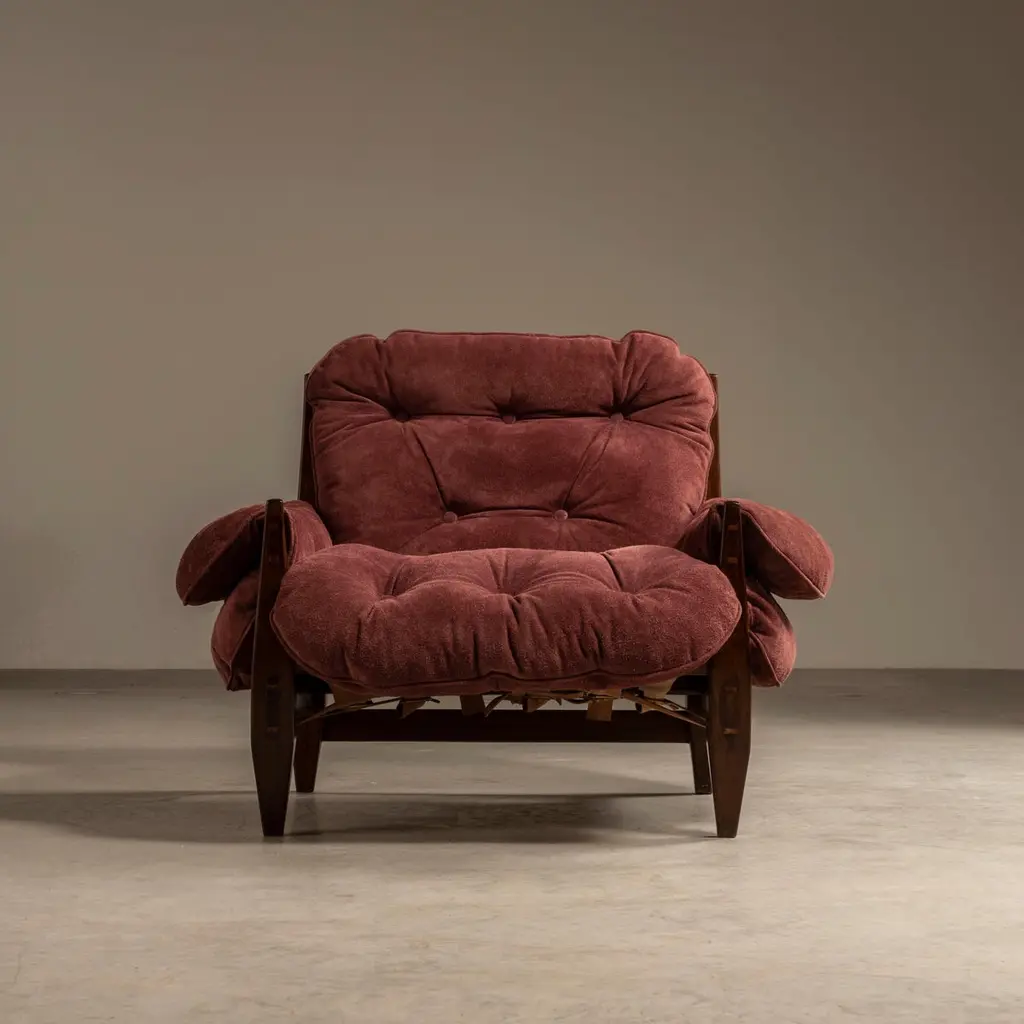 The Rodeio armchair is an iconic piece that perfectly represents the main characteristics of Brazilian design as a school. It is one of the most outstanding creations of Jean Gillon, a Romanian artist who has left an indelible mark on Brazilian design. The piece is not only remarkable for its stunning design, but also for its exceptional comfort and solid Brazilian hardwood structure.The armchair's design is both modern and timeless, with clean lines and a bold shape that exude sophistication and elegance. The piece's remarkable ergonomic features, along with its soft cushions, make it one of the most comfortable chairs you will ever sit in.This armchair was restored by one of our best craftsmen in São Paulo, who has managed to preserve its original aura and attraction. Every inch of the armchair was carefully restored to its original glory, so it's ready to grace your home with its unmistakable style.Jean Gillon moved to São Paulo in 1956 and his love for Brazil, its natural resources, and culture, was reflected in his work. Jacaranda Brazilian rosewood was a material often used in his pieces, and it gives the Rodeio armchair its remarkable texture and character.The Rodeio armchair is a perfect example of Brazilian design as a school. It is a piece that combines style and comfort, beauty and functionality. This armchair is a must-have for those who appreciate design that is not only beautiful, but also functional and comfortable. It is a true gem that will add a touch of elegance to any interior.